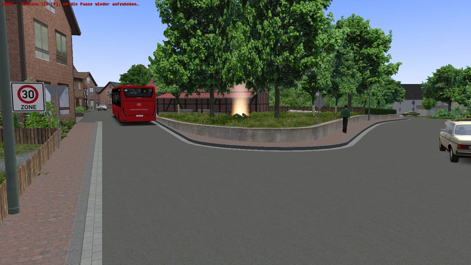 Anschließend biegt der Bus nach links, in eine kleinere Nebenstraße, ab.
