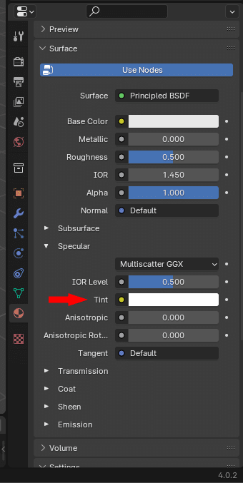 Wo der Punkt "Specular" ist weiß ich. Aber ich kann denn Punkt für die Lichtreflektion nicht finden. Ich nutze halt die Version 4.0.2.