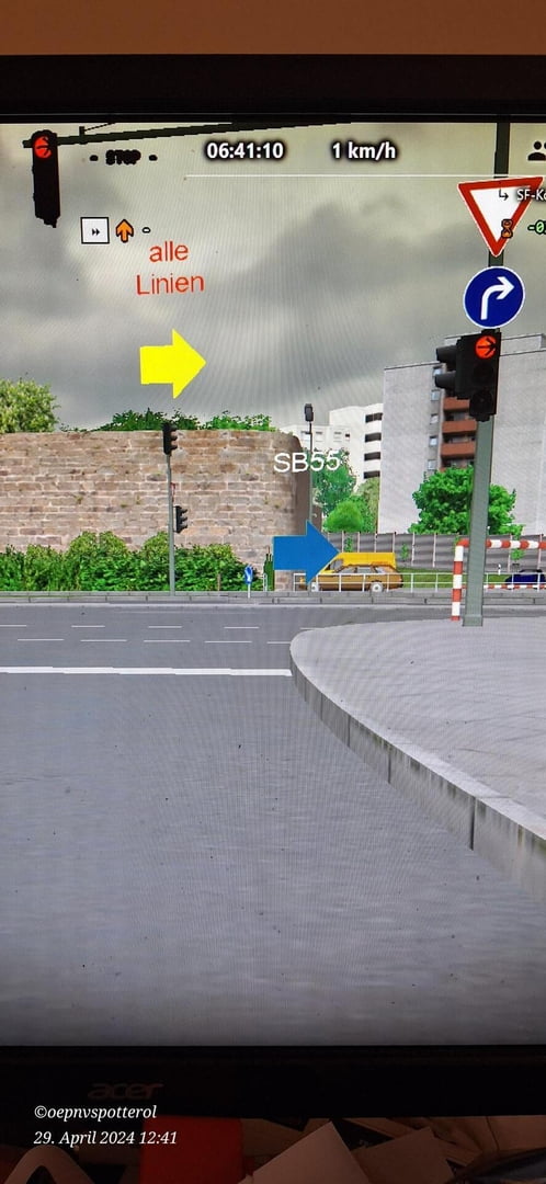 Ich habe eventuell noch 2 Verbesserungsvorschläge zum Thema Hilfspfeile ich bin derzeit am Abfahen der Linie SB55 und an einigen Stellen sind ja Pfeile mit der Beschriftung alle Linien und darunter nochmal extra der Pfeil der SB55 kann man die nicht entfernen da ich der Meinung bin das diese überflüssig sind. Wie hier als Beispiel auf dem Bild zusehen ist. Und dann sind die Pfeile meiner Meinung an den meisten Stellen sehr nah auf dem Boden eventuell kann mann die wie die Orginalen weiter nach oben platzieren.