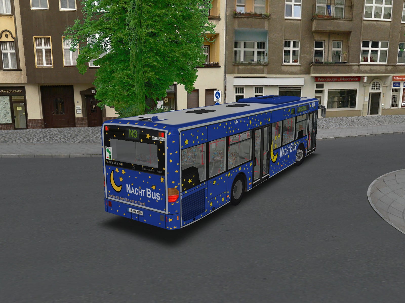 Für seinen Einsatz als Nachtbus hat er eine blaue Nachtbus-Beklebung erhalten.