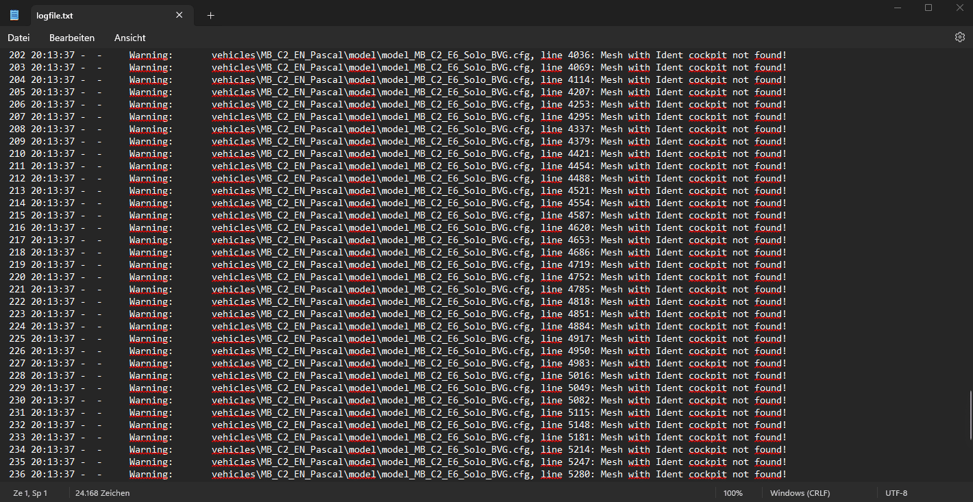 Da kommen noch ein paar identische Fehler nur in anderen Zeilen in der model.cfg
