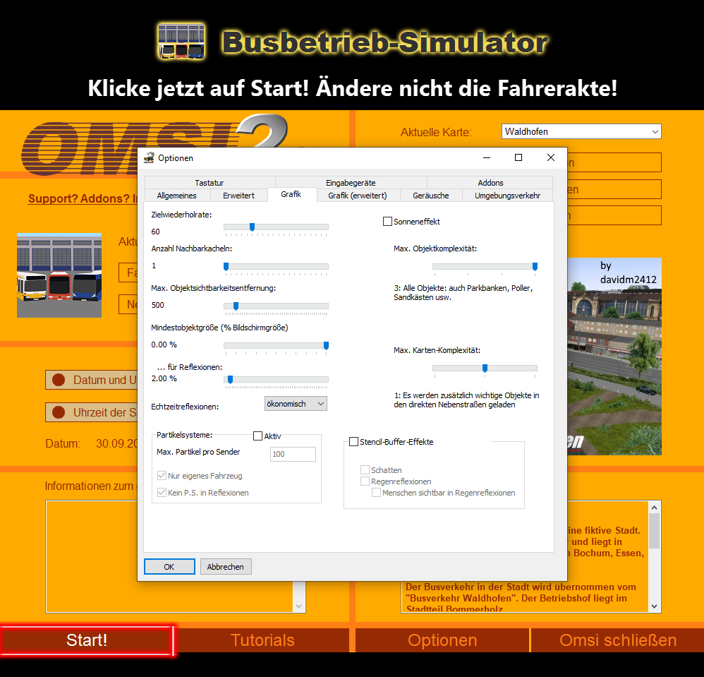 Habe mal eine ganz allgemeine Frage, da ich das Gefühl habe Omsi läuft trotz runtergestellter Einstellungen immer schlechter.