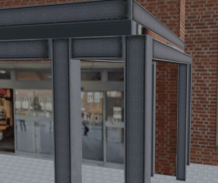 Die Pfeiler habe ich tatsächlich direkt als Rechteck gebaut, die Textur lässt es nur so wirken als sei es ausmodelliert.