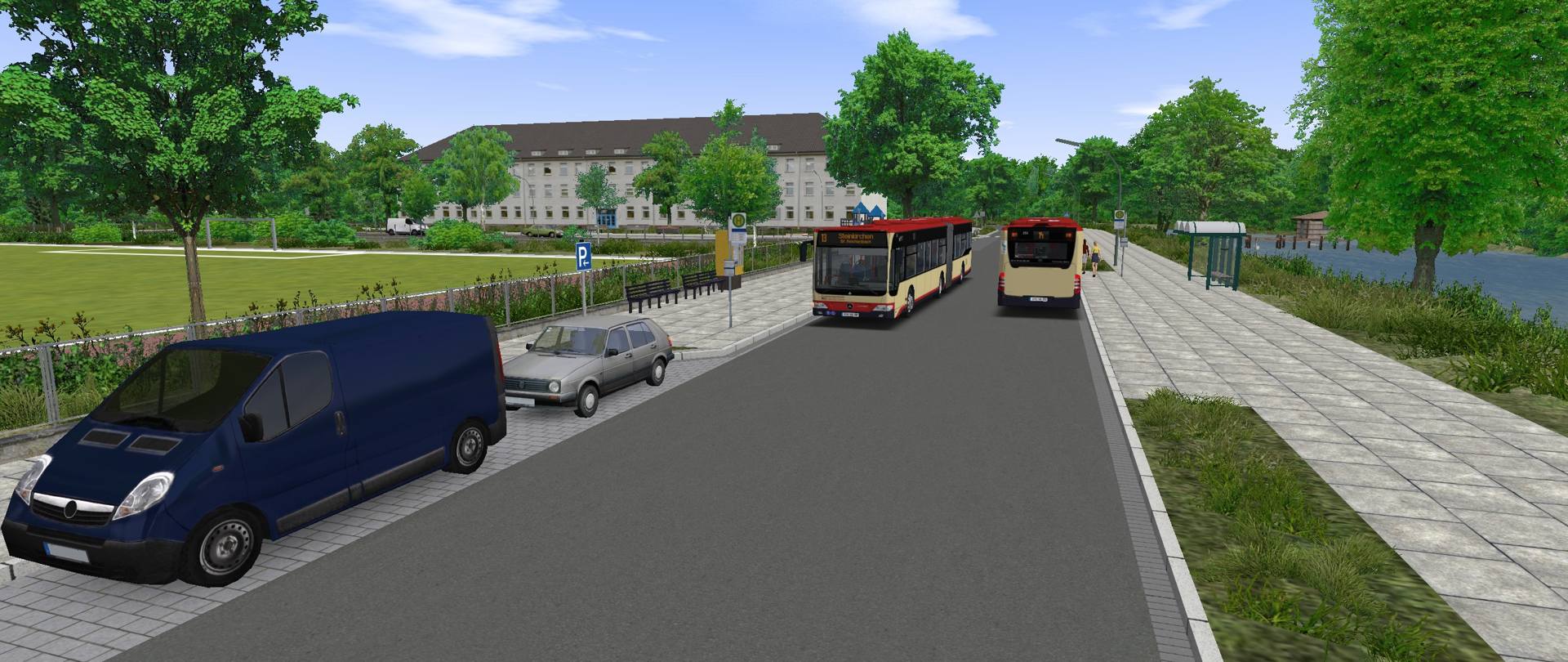 Wenn der KI-Bus die Haltebucht nicht sauber mitnimmt, wird daraus eben ein Bus-Kap - so geschehen auf der linken Seite, wo die Linie 13 gerade hält. Dies betrifft den Fahrplan nicht, aber hilft, dass die KI nicht einige Meter durch parkende Autos oder Gehwege fährt. Selbiges wurde auch in Partenen nahe des Betriebshofs und in Oststeinbek angepasst.