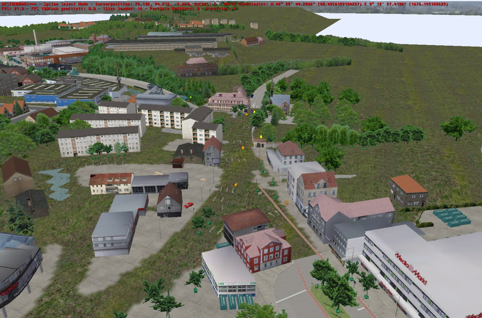 Die letzten fehlenden Meter der Strecke im Industriegebiet Mahden sind vollendet! Drei Kreuzungsobjekte und einige Splines mussten dafür noch erstellt und verlegt werden. Jetzt sind also alle drei nördlichen Endhaltestellen (Altenburg Nord, Bildungszentrum Nord und Mahden) fertig. Damit fehlt jetzt prinzipiell "nur" noch die Bebauung in Rommelsbach, Altenburg und Mahden, sowie die Schließung letzter verbliebener unerwünschter Sichtachsen auf dem restlichen Streckenverlauf. Dann kann es nach dann über drei Jahren Bauzeit auf letzte Tests und schlussendlich den Release zugehen.