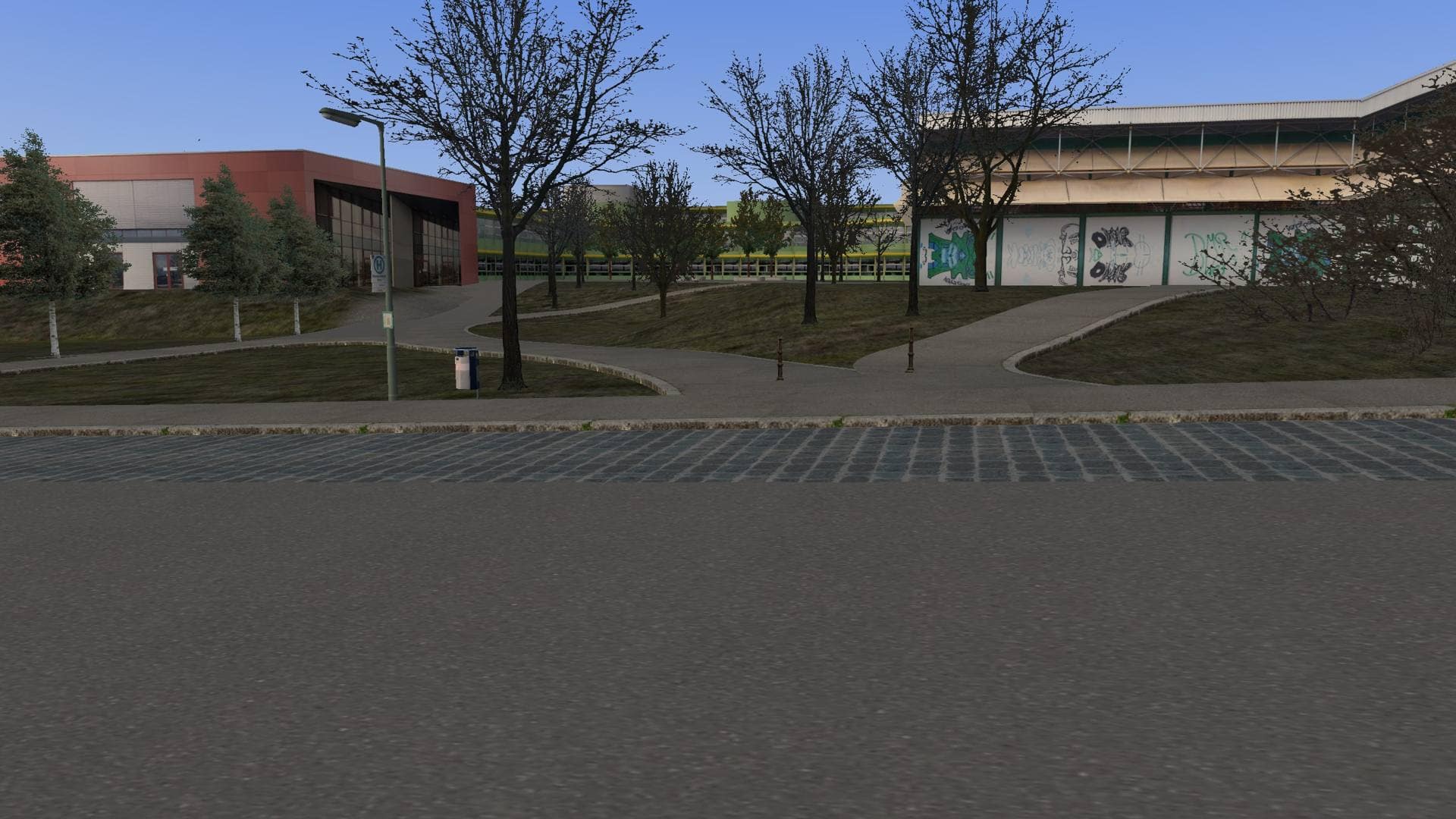 Die letzten fehlenden Meter der Strecke im Industriegebiet Mahden sind vollendet! Drei Kreuzungsobjekte und einige Splines mussten dafür noch erstellt und verlegt werden. Jetzt sind also alle drei nördlichen Endhaltestellen (Altenburg Nord, Bildungszentrum Nord und Mahden) fertig. Damit fehlt jetzt prinzipiell "nur" noch die Bebauung in Rommelsbach, Altenburg und Mahden, sowie die Schließung letzter verbliebener unerwünschter Sichtachsen auf dem restlichen Streckenverlauf. Dann kann es nach dann über drei Jahren Bauzeit auf letzte Tests und schlussendlich den Release zugehen.
