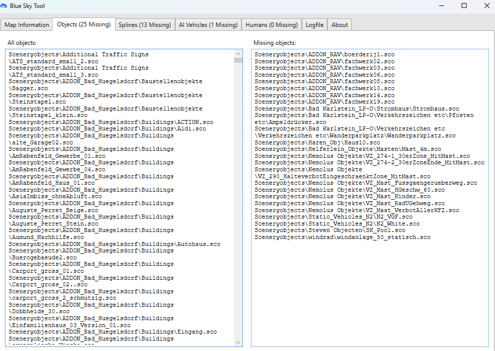 Ausserdem zeigt mir das Bluesky-Tool an, das ein AI-Fahrzeug fehlt, allerdings weiss ich nicht welches
