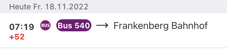 das verlangt keiner (ich auch nicht), nur diese scheiß Zeiten sollten zumindest zu halten sein, aber nicht dass zwischen zwei Haltestellen die Verspätung von +2 auf +5 anwächst!
