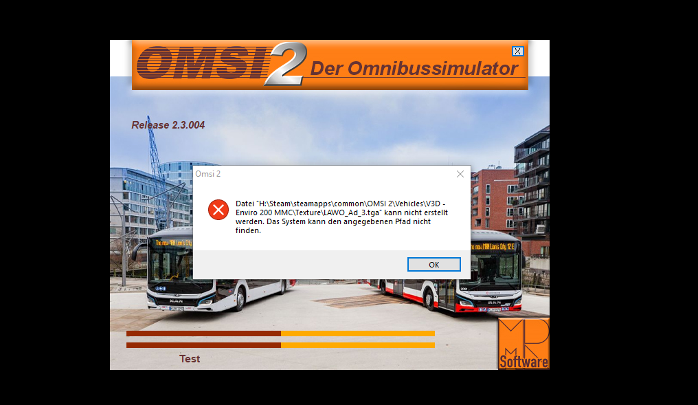Hallo zusammen! Leider startet mein Omsi auf einmal nicht mehr. Stattdessen öffnet sich nur ein Test-Fenster mit Fehlermeldung (siehe Bild).