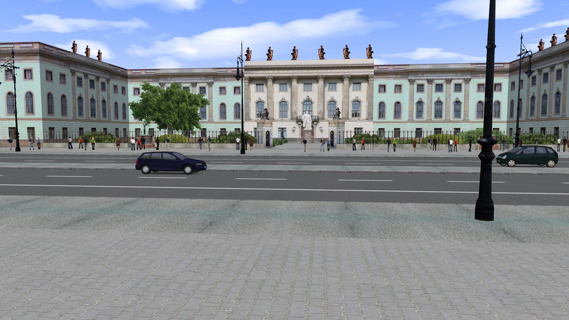 Ich weiß, du hattest geschrieben, die Map wird nur halb-real werden, aber wirst du trotzdem noch die Spurführung für "Unter den Linden" anpassen? Real wäre da nämlich zwischen Gehweg und Busspur noch ne Parkspur (es sei denn die wurde im letzten Jahr entfernt). Hier mal Street view als vergleich und zum veranschaulichen was ich meine (Unter den Linden/Glinkastraße) Street View (klick mich). Außerdem ist die Busspur eigentlich so ca. nen halben Meter breiter als die "normalen" Spuren.