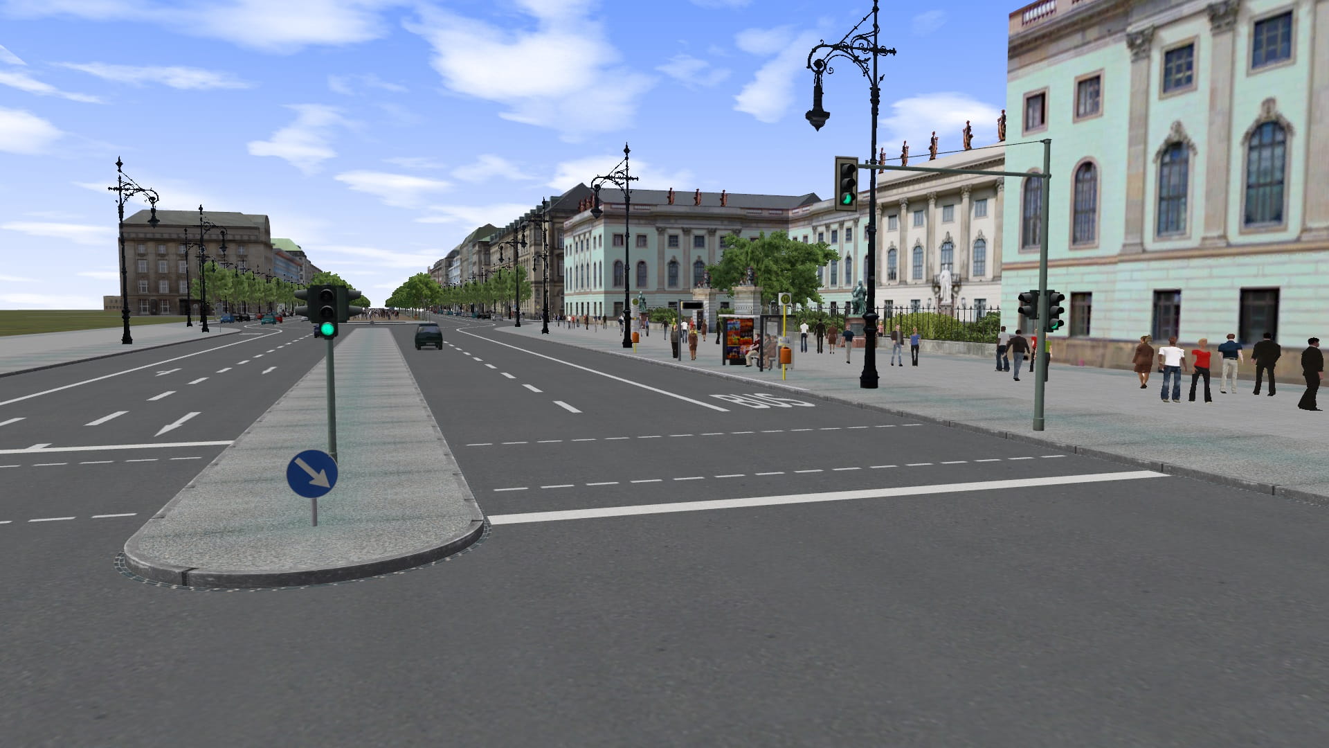 Ich weiß, du hattest geschrieben, die Map wird nur halb-real werden, aber wirst du trotzdem noch die Spurführung für "Unter den Linden" anpassen? Real wäre da nämlich zwischen Gehweg und Busspur noch ne Parkspur (es sei denn die wurde im letzten Jahr entfernt). Hier mal Street view als vergleich und zum veranschaulichen was ich meine (Unter den Linden/Glinkastraße) Street View (klick mich). Außerdem ist die Busspur eigentlich so ca. nen halben Meter breiter als die "normalen" Spuren.