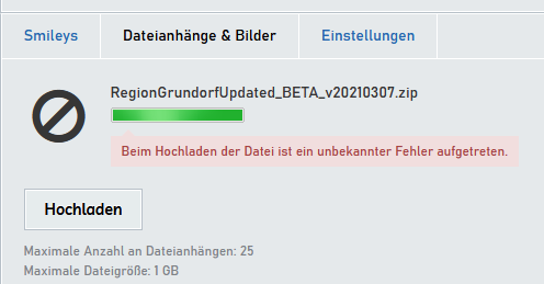 WebDisk Upload fehlgeschlagen (25MBit Datei)