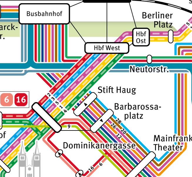 Ich persönlich würde die 16 wenn überhaupt als Ringlinie etablieren, und sie nur an einer der beiden Haltestellen enden lassen. Macht meine Meinung nach am meisten Sinn, da die Linie z. B. von der Carl-Schurz-str. zur Spiegelstraße nur 3 Zwischenhalte hat. Das würde ein Fahrtzeit von ca. 5min ergeben. Das ist für mich als Fußgänger keine Entfernung, die es sich zu fahren lohnt. Vom Takt her halte ich das auch für ein bisschen überfrequentiert, da die Linie im aktuellen Konzept keine andere Funktion hat, als die rechte und linke "Hauptachse" zu verbinden (ein 30 min bis 1h Takt wäre mMn. schon deutlich angebrachter).
