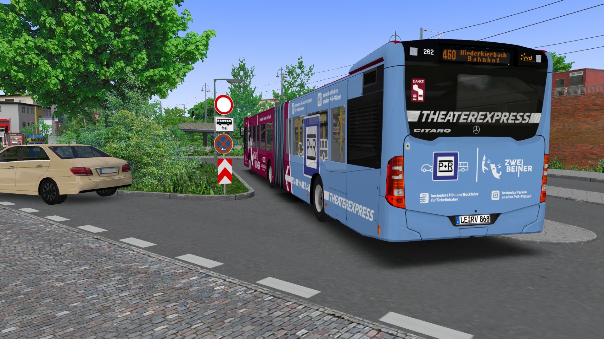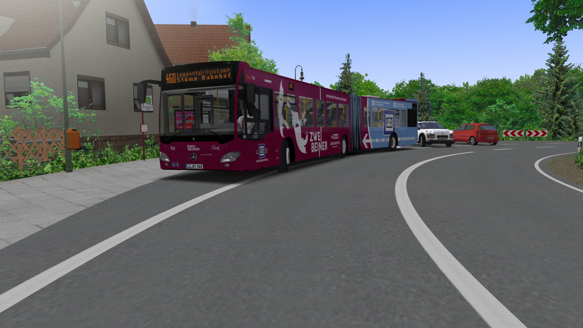 Am Statthalterplatz fährt ein Capacity auf der 66 gerade ab