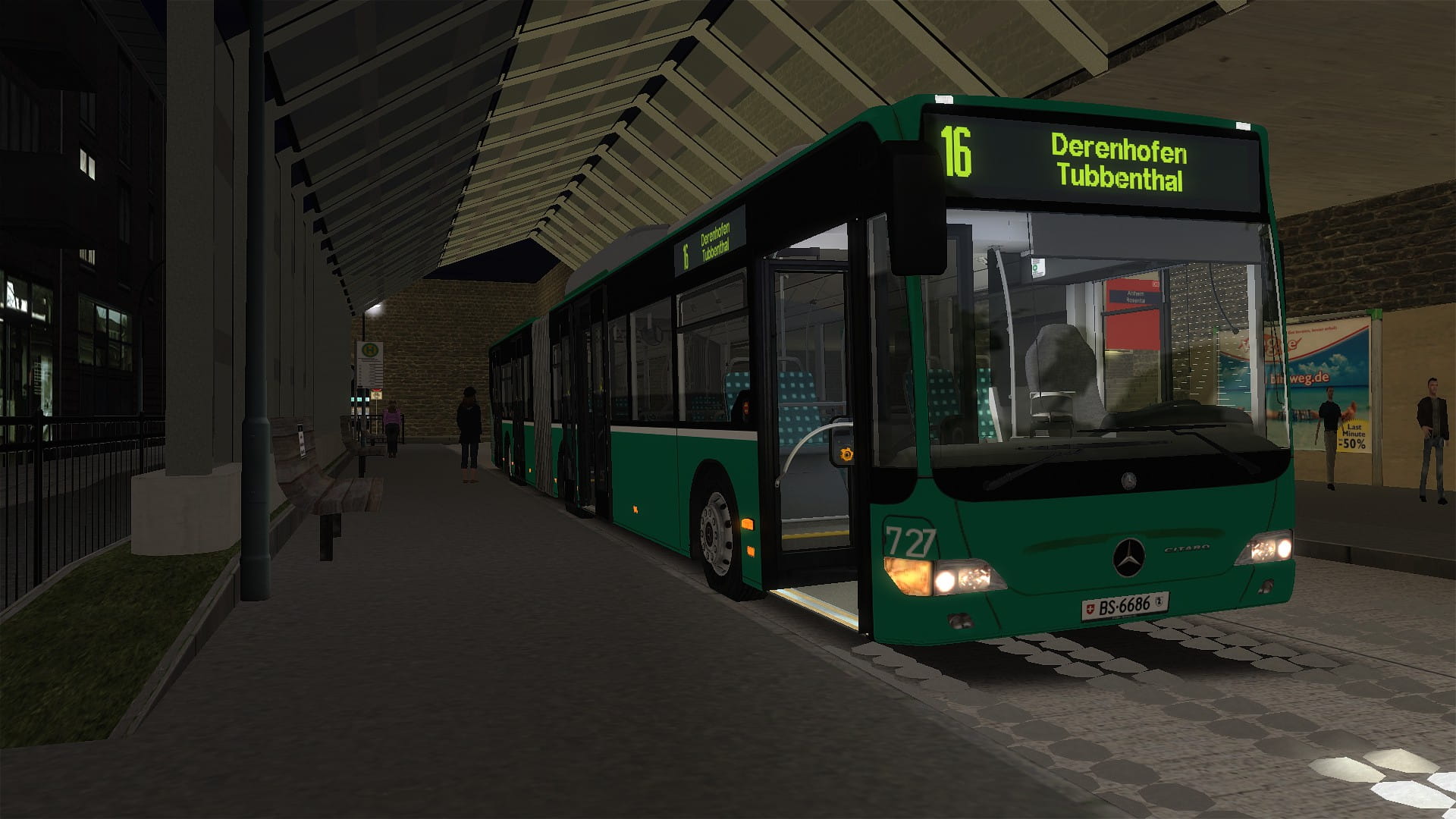 Für die geplante Beschaffung von 5 Citaro C2G NGT, hat die AVG zusammen mit SWL zur Testzwecke 1 Citaro Facelift G CNG von der Basler Verkehrsbetriebe (Fahrzeug 727) gemietet.