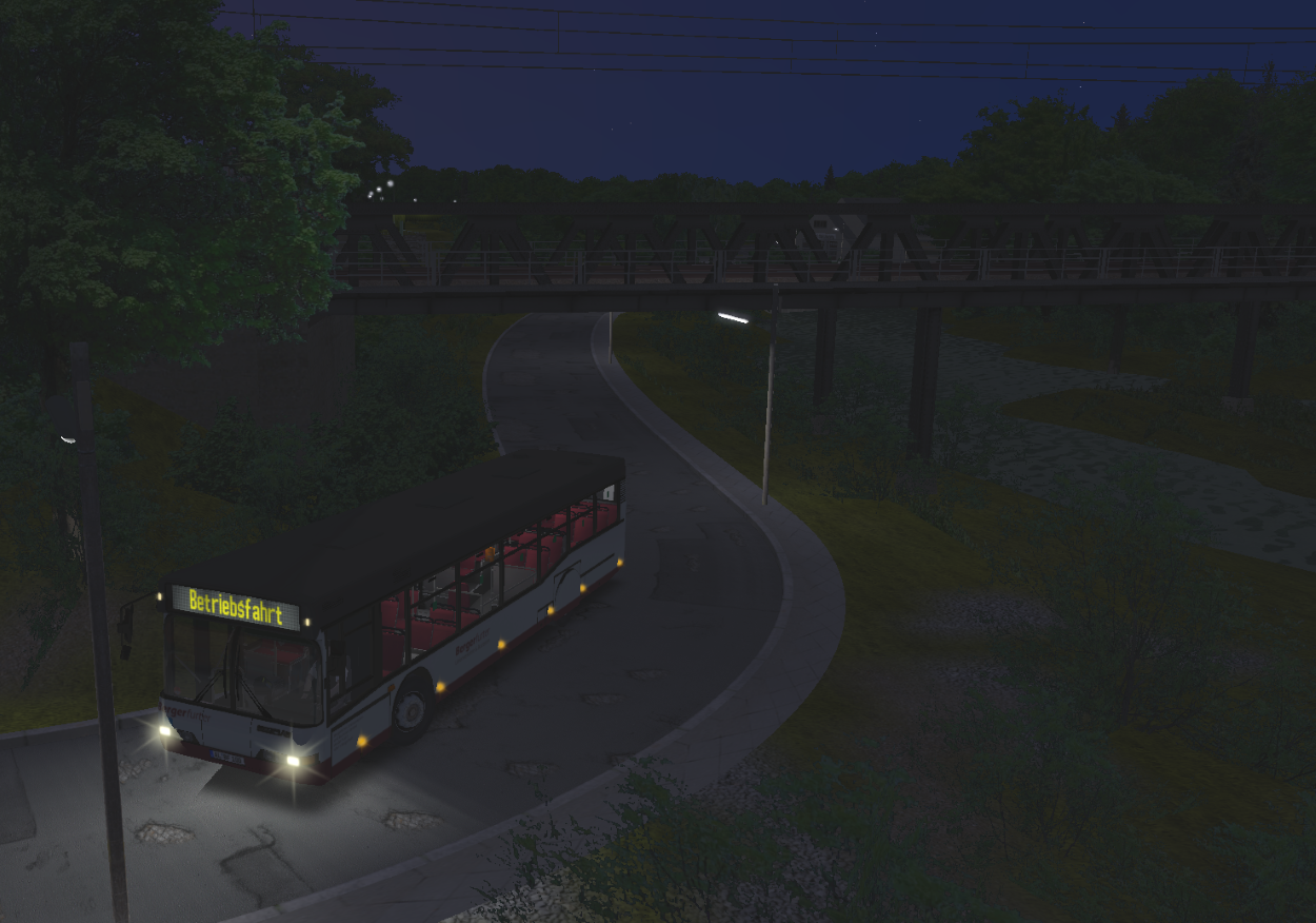Unser Fahrer befört ihn sicher von seiner abendlichen Skatrunde zum Harbsener Bahnhof.Nochmal gut eine Stunde später hat der Bus Harbsen und das Stoelzbachtal erneut erreicht. Gegen 1:20 Uhr geht es nun als Betriebsfahrt zurück zum Depot, ab in den Feierabend.