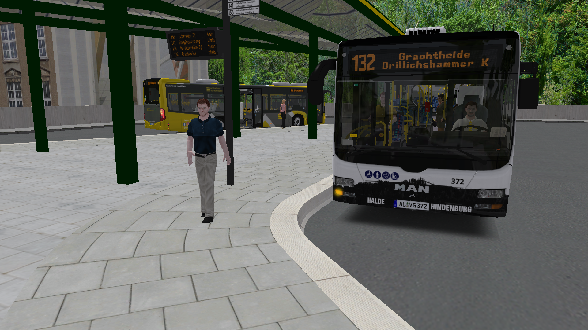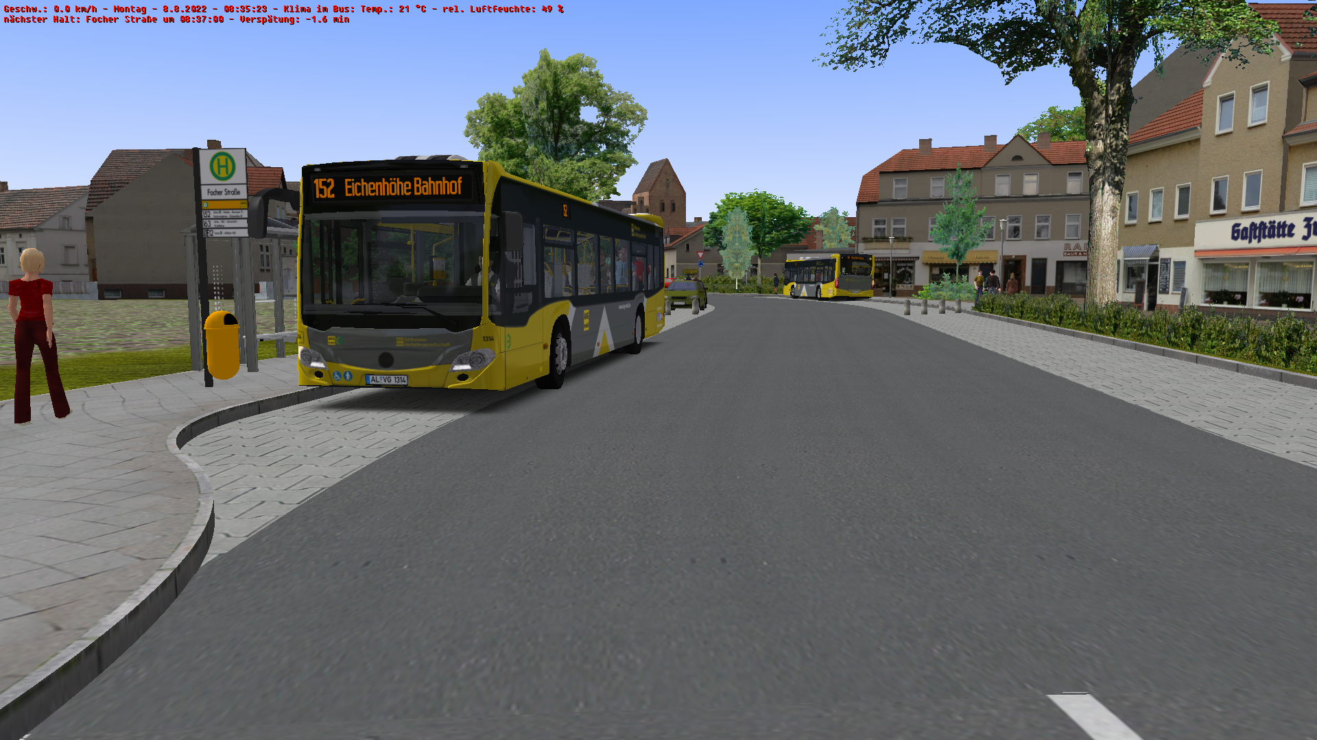 Zwischenzeitlich hat der Bus den Landwehrplatz erreicht, ist jedoch noch erstaunlich leer. Weniger erstaunlich ist die Verspätung, diese lag zu diesem Zeitpunkt bei 12 1/2 Minuten.