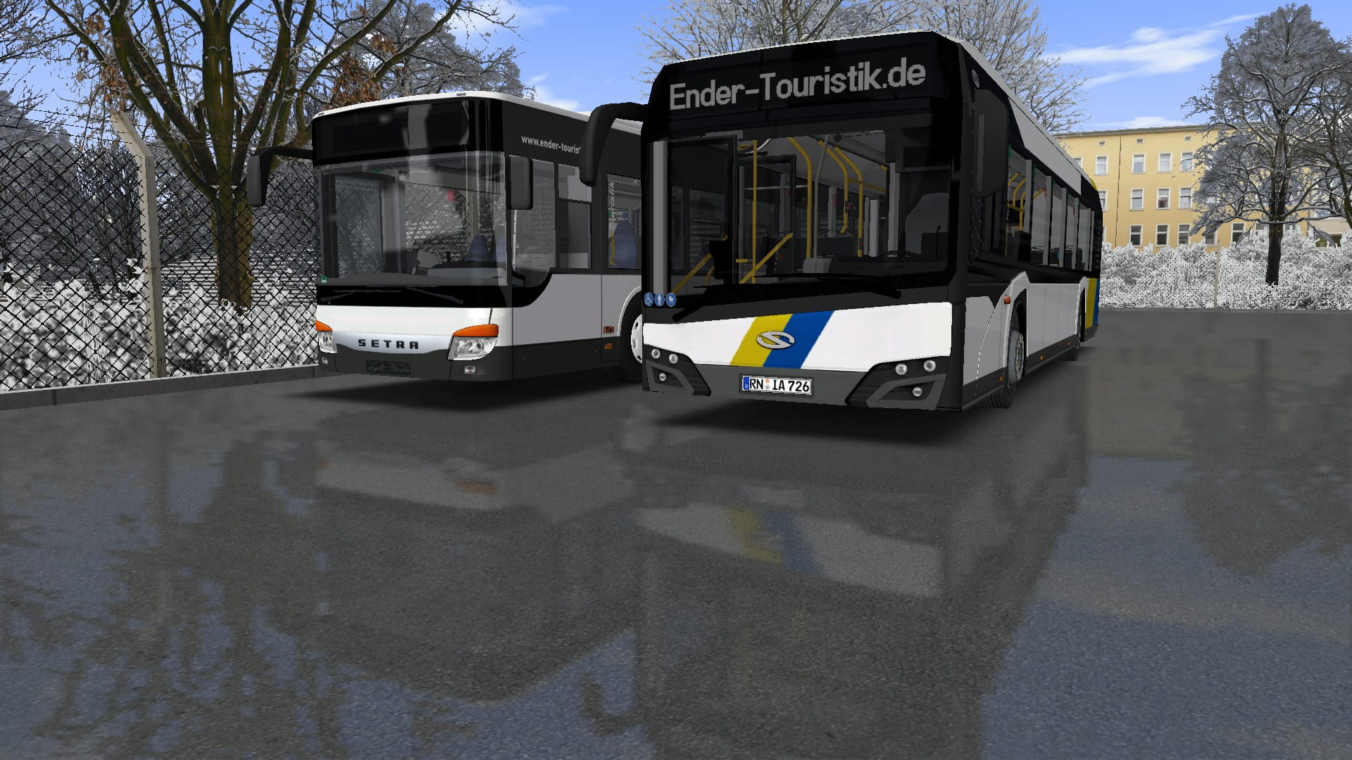 Einer der Zwei Setra S415 NF von Ender Touristik steht bereits abgemeldet auf dem Hof.