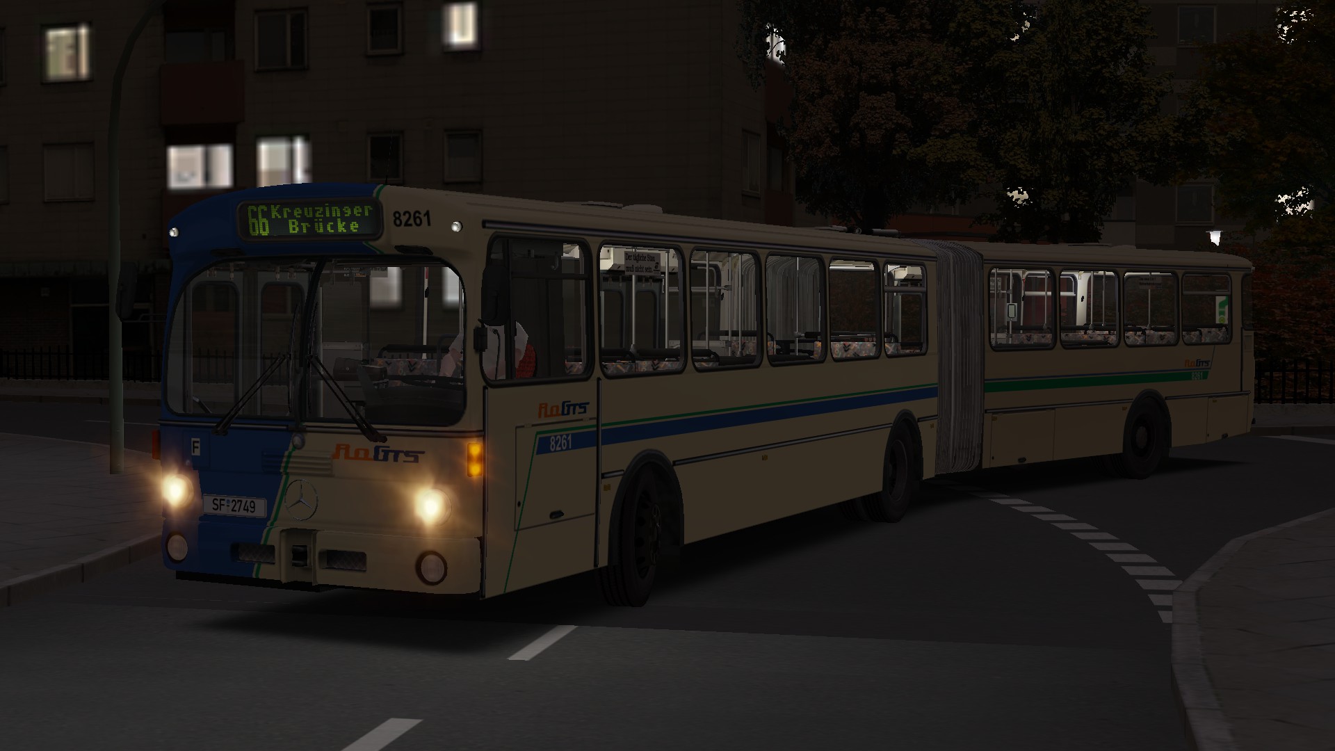 So konnte man Mitte der 80er-Jahre den Wagen 8261 auf der Linie 66 durch die Nacht fahren sehen.