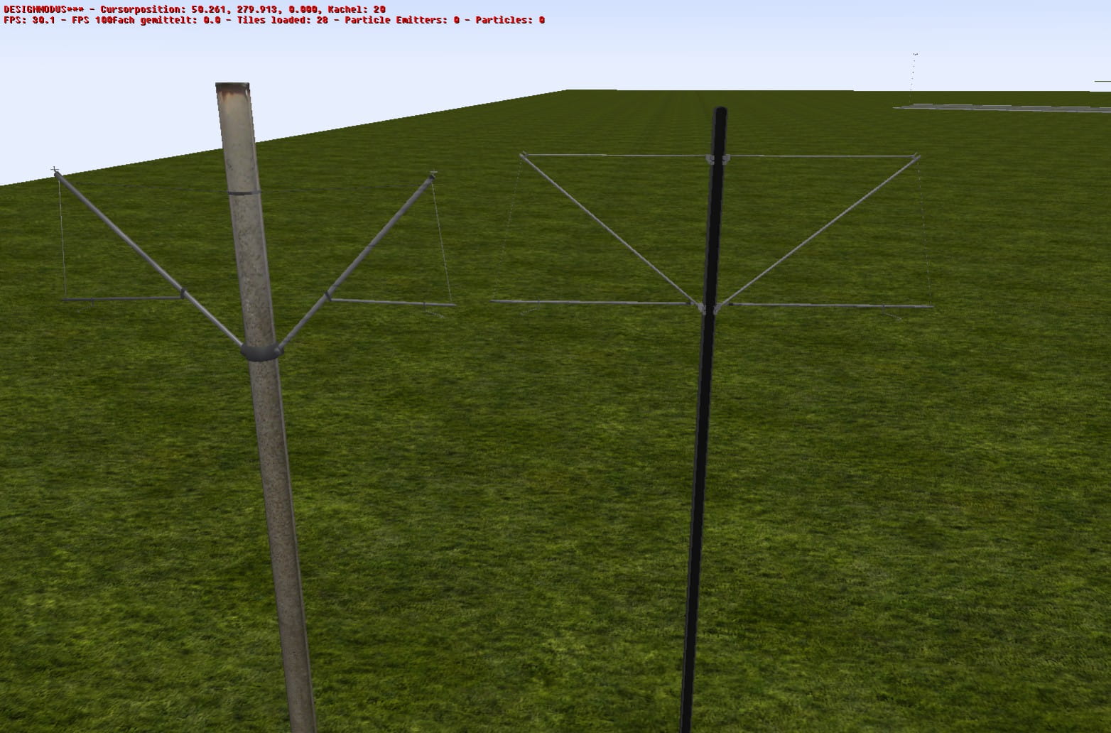 Bei den Stahlmasten gibt es einen 6,5m und einen 8m Mast. Diese haben auch einen einen mittigen Ausleger und zwei verschiedene Abspannrollen mit Gewichten.