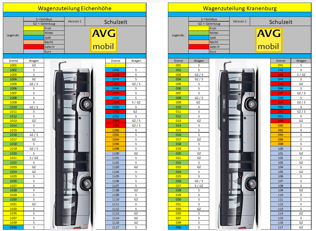 Hinzu kommen ganz am Schluss noch Kurzdienste (ich denke so 12 Stück) von bis zu 3 Stunden länge, welche von Werkstatt- und Büromitarbeitern zur Verstärkung bei den Schulfahrten/Hauptverlehrzeiten gefahren werden.