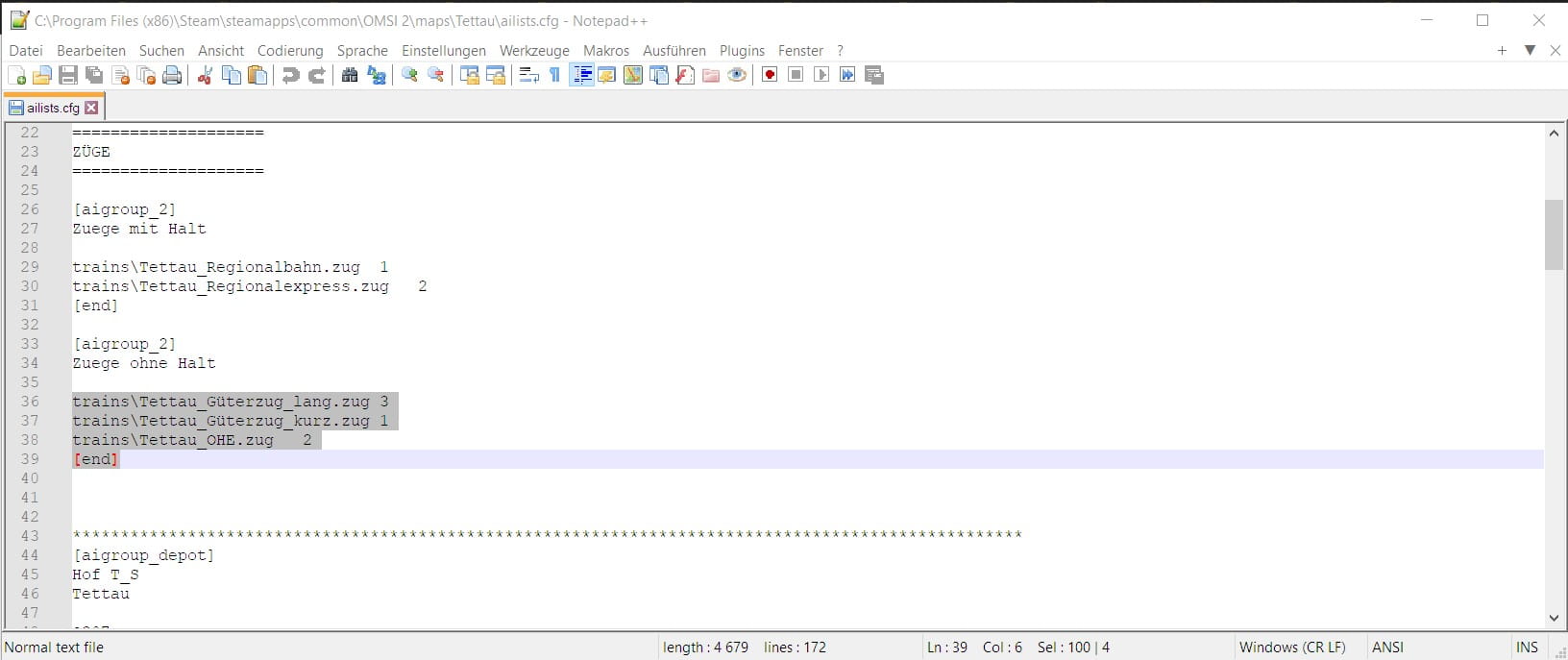 Ich habe die Ailist, wie Du vorgeschlagen hast in Notepad++ geöffnet und auch dort steht rechts unten, das das Charakter Set auf ANSI eingestellt ist.