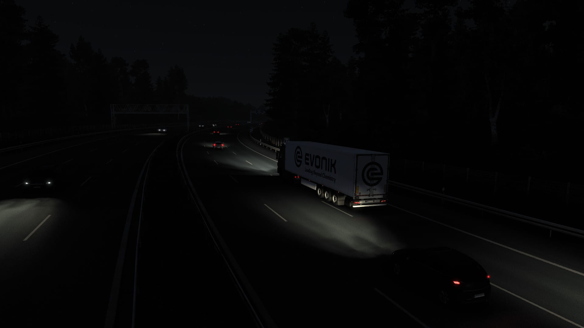 Der SK macht sich auch gut vor den Ekeri Kühlauflieger und dank seiner 530 PS ist er auch nicht unbedingt der schwächste und langsamste Lkw auf der Bahn.
