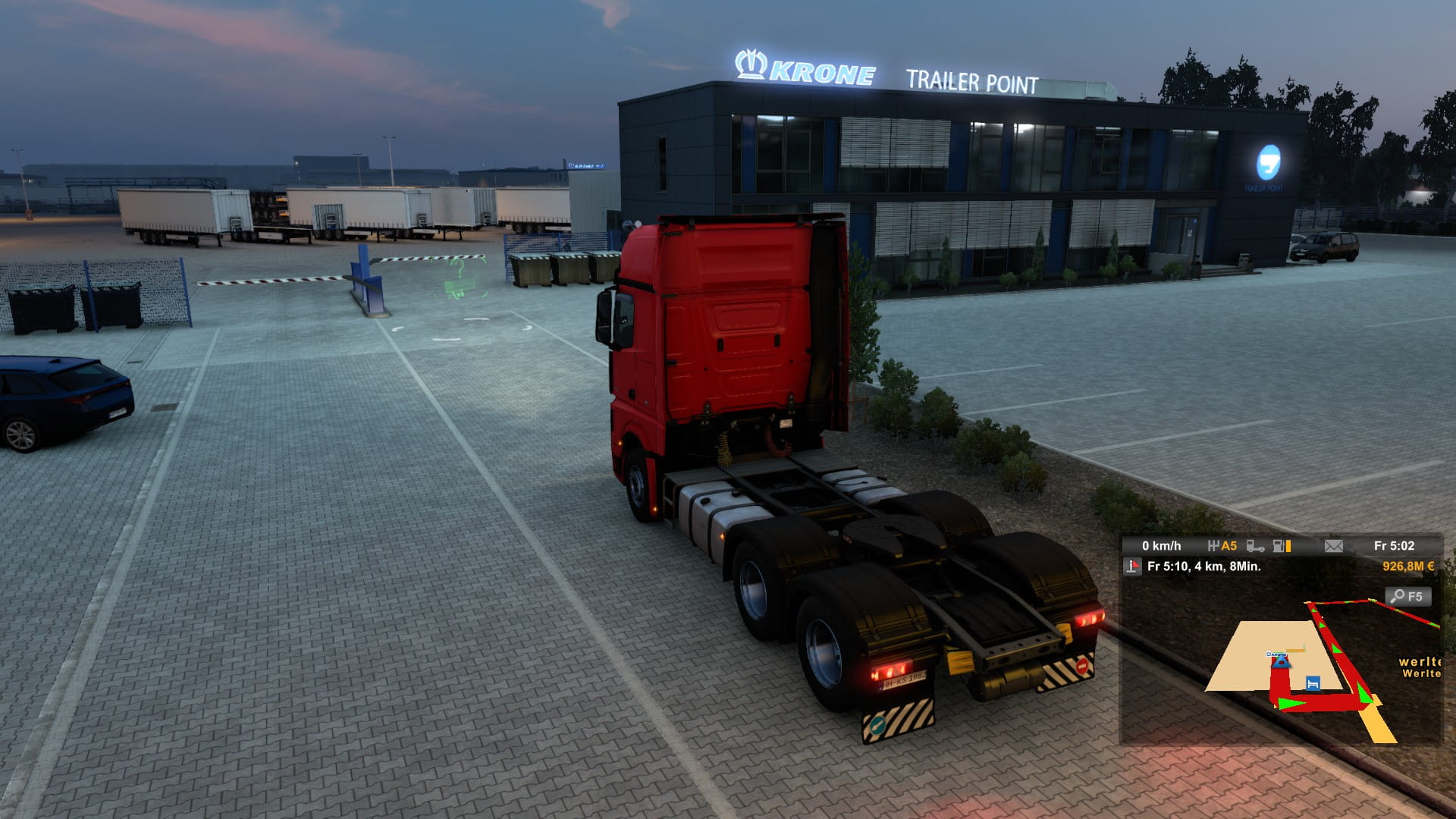 Aber jetzt erstmal Feierabend auf einer Raststätte kurz nach dem Grenzübergang nach Deutschland.