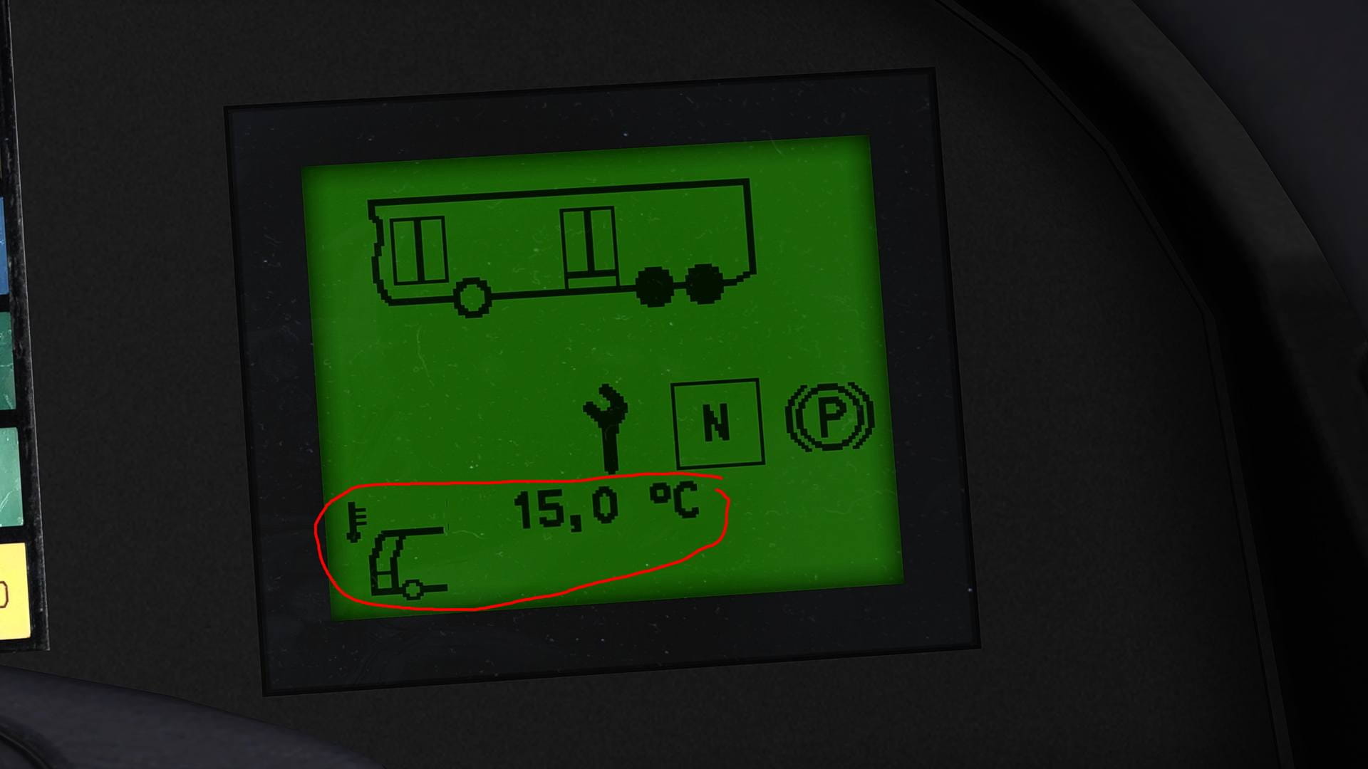 Es geht um ein neues kleines Problem. Es geht um den Citaro Facelift. Bei Start der Elektrik kommt immer standardmäßig die Außentemperaturanzeige im unteren Teil des Bildschirms, siehe Bild.