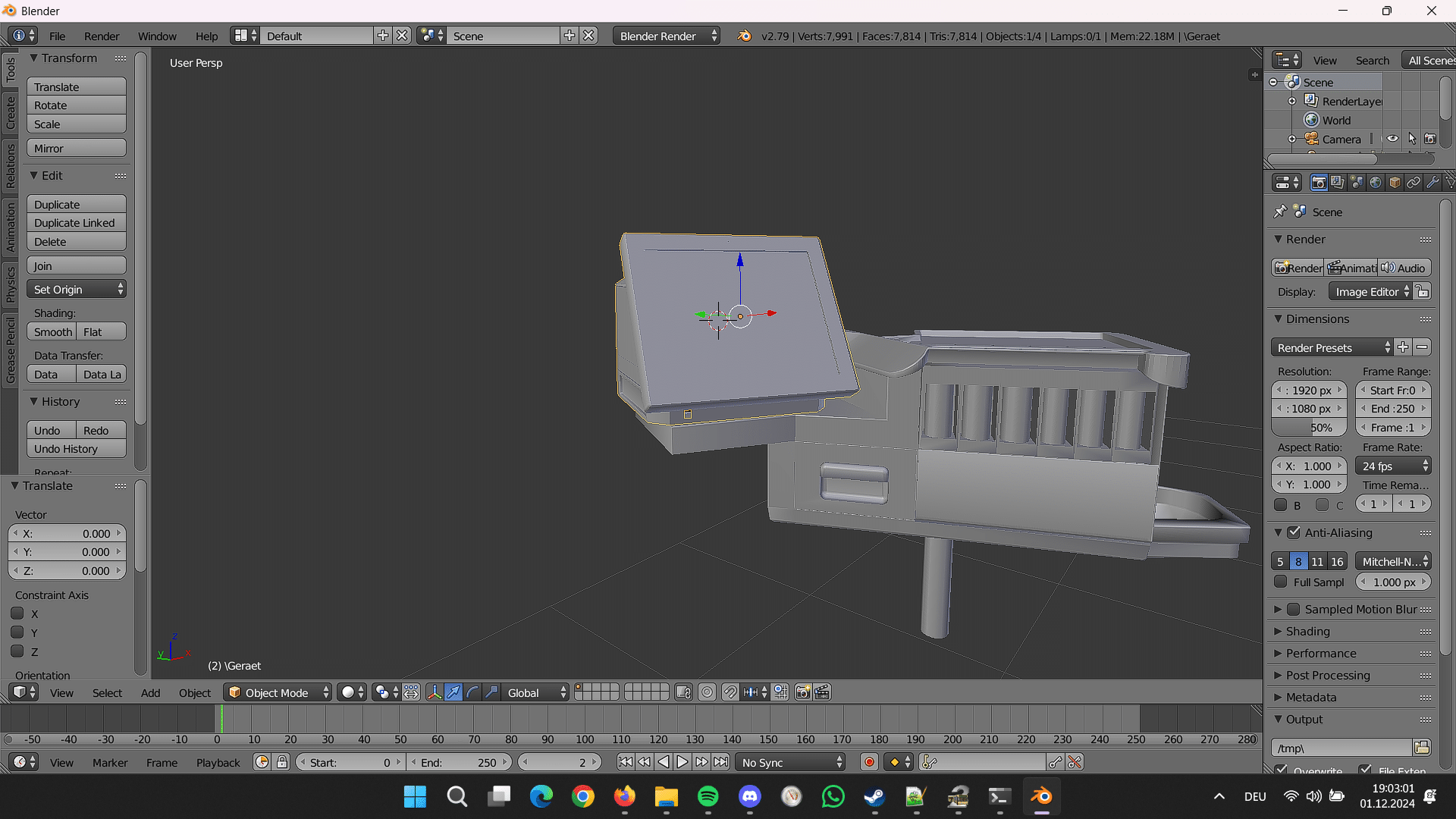 Die Rotation mache ich über den 3D-Cursor in Blender und über origin_trans in OMSI. Die habe ich nicht in Blender effektiv durchgeführt, der 3D-Cursor ist am Eck aber als rot-weißes Fadenkreuz erkennbar.
