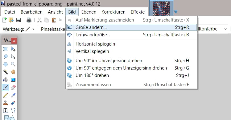 Okay, ich habe es mit Paint.net geöffnet, aber wo finde ich das mit der Größe ändern?