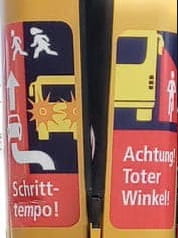 Heckaufkleber "toter winkler" und "schritttempo"