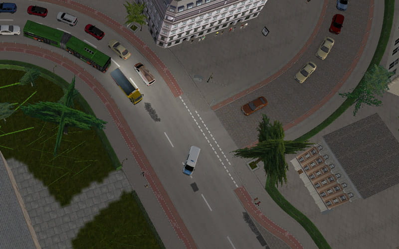 Erst stand ich schon kurz nach dem Betriebshof im Dauerstau und konnte warten bis nach und nach die beiden Linksabbieger vor mir wegplotten, die vom Gegenverkehr blockiert waren (Rückstau der Ampel hatte hier dauerhaft die Abbiegemöglichkeit zur Seitenstraße geblockt und als dann endlich ein kleines Loch war fuhr natürlich nur die KI aus der Seitenstraße raus.)