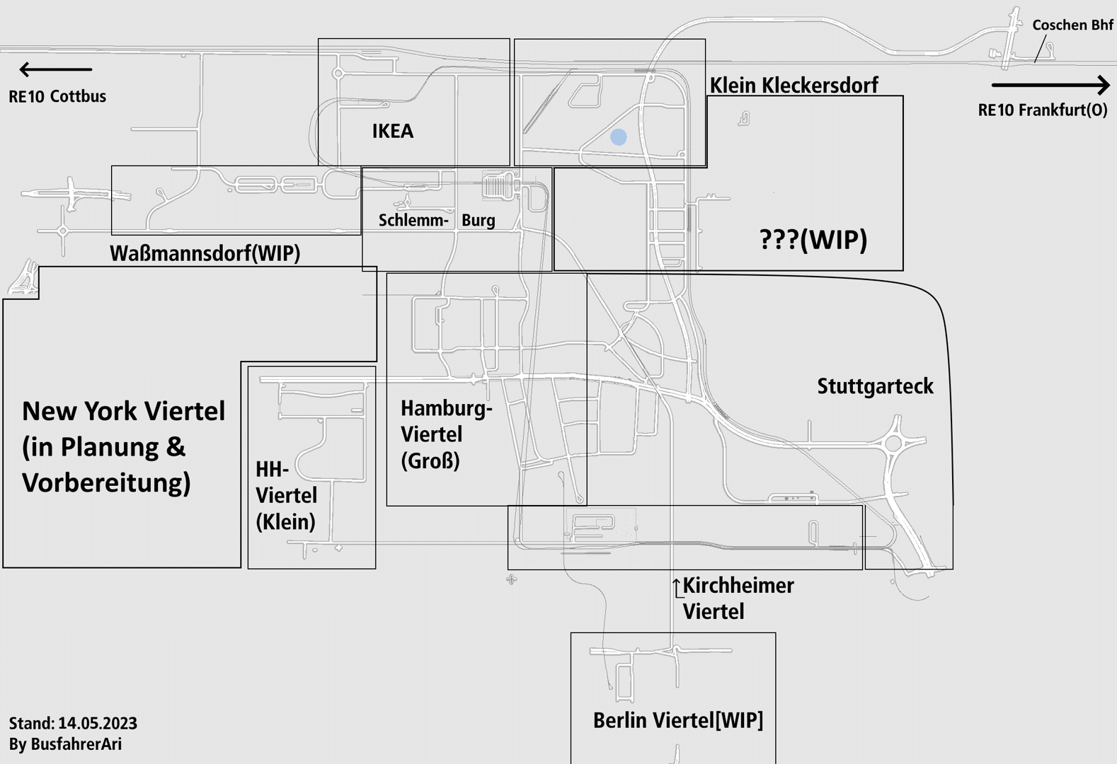 Sichtlich gesehen ist Kleckersdorf In Viele Verschiedene Bezirke Wie in Berlin oder andernorts Aufgeteilt, zum einem Gibt's den gleichnamigen Ort Kleckersdorf. Dann das Hamburger Eck, oder ein Stuttgarteck mit Haltestellennamen die auf Ortschaften oder Bahnhofsnamen angelehnt sind.