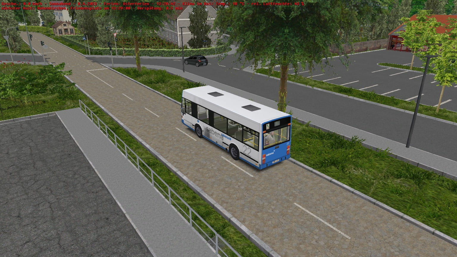 Und wo ich schon bei der KI bin, ist mir bei Angelroda was aufgefallen, was ich, glaub ich, schon vor dem Update mal gesehen habe. Von Hohenkirchen kommend fährt die KI kaum in die eckige Haltebucht rein. Sie hält zwar und die Türen öffnen sich auch, aber die Leute an der Haltestelle steigen nicht ein. Vielleicht, weil der Bus zu weit auf der Straße steht.