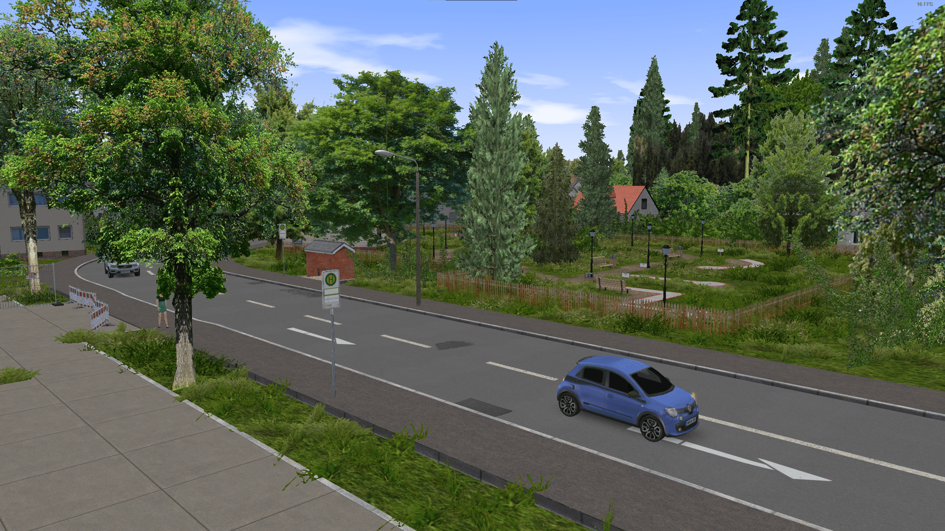 Dann schon bald der erste Unfall, irgendwo beim Abbiegen schoss mir die KI seitlich rein. Generell scheint fürs Abbiegen an vielen Stellen kein Platz zu sein, selbst für einen 12m Bus. Die Haltepunkte an Kreuzungen der KI sind oft sagen wir mal unglücklich. Unglücklich dann auch dass man eine Haltestelle die per Stichfahrt aus beiden Richtungen bedient wird (Treppendorf Markt) auch aus zwei Richtungen in jeweils entgegengesetzter Richtung bedient wird. Sehr schön wenn sich da die Busse begegnen... Es ist eine fiktive Karte wo man die Freiheit gehabt hätte das schöner zu lösen. Und ind er Realität hätte man da auch sicher die Busse nur in einer Richtung geschickt und die gleiche Haltestelle bedienen lassen.