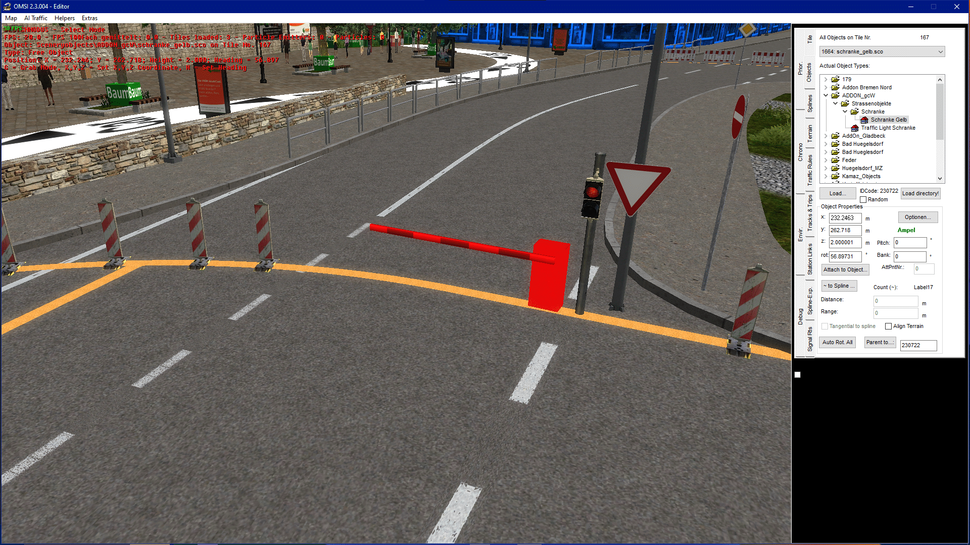 Solch eine Schranke muss an ein Kreuzungsobjekt mit Ampelphase attached werden, damit auch die KI an sich zurückgehalten werden kann.