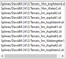 Dir fehlt diese Spline: Spline wurde nicht gefunden: Splines\DavidM 2412\Terrain_16m_kopfstein4.sli (eventuell in ALU enthalten??)
