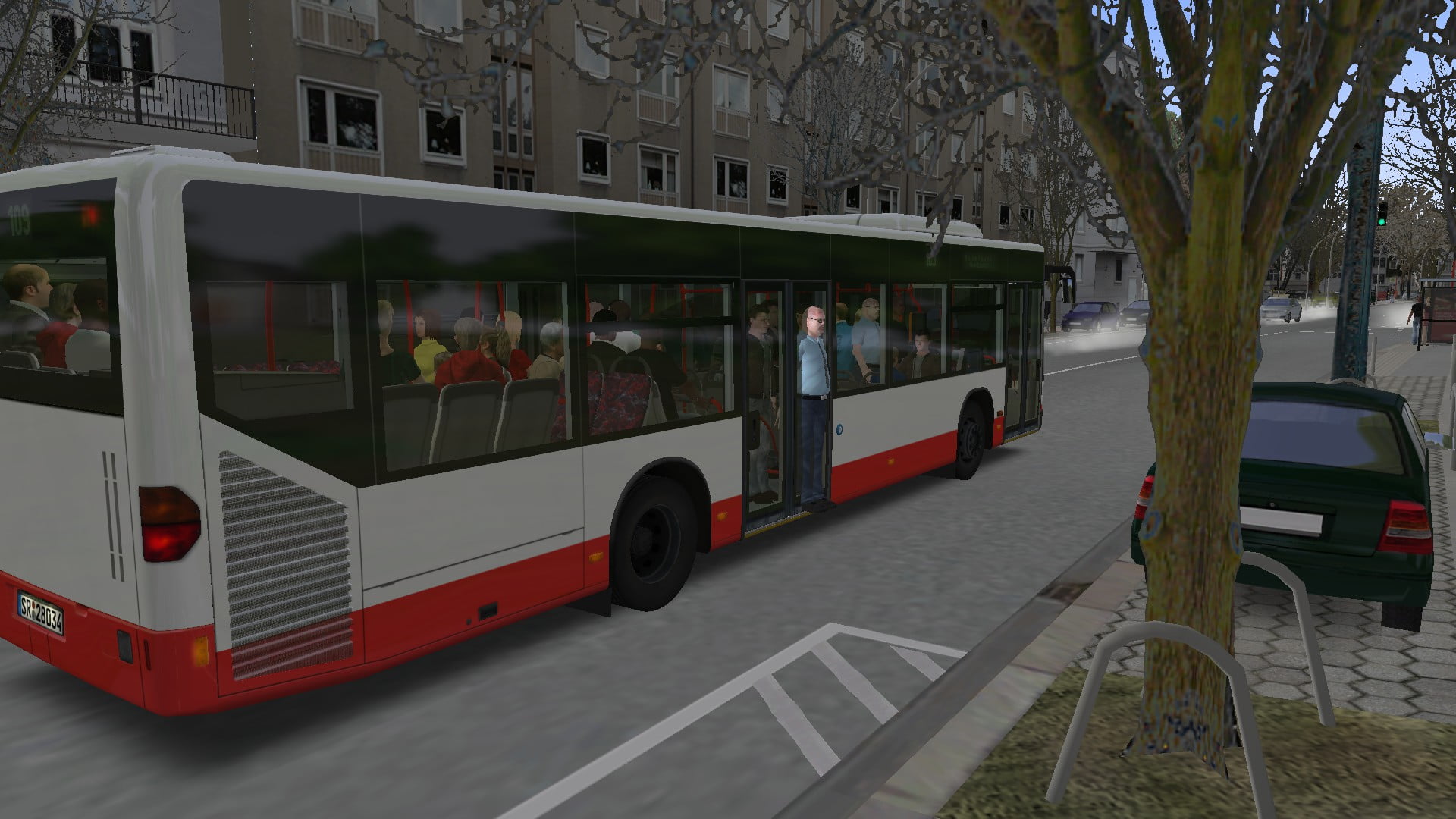 Du drückst auf die rechte Seite des Schulbustasters, fährst normal an die Haltestelle und öffnest eine Tür. Dann schaltet sich der Warnblinker an. Wenn du die Türen wieder zu hast und den linken Blinker setzt geht der Warnblinker aus.