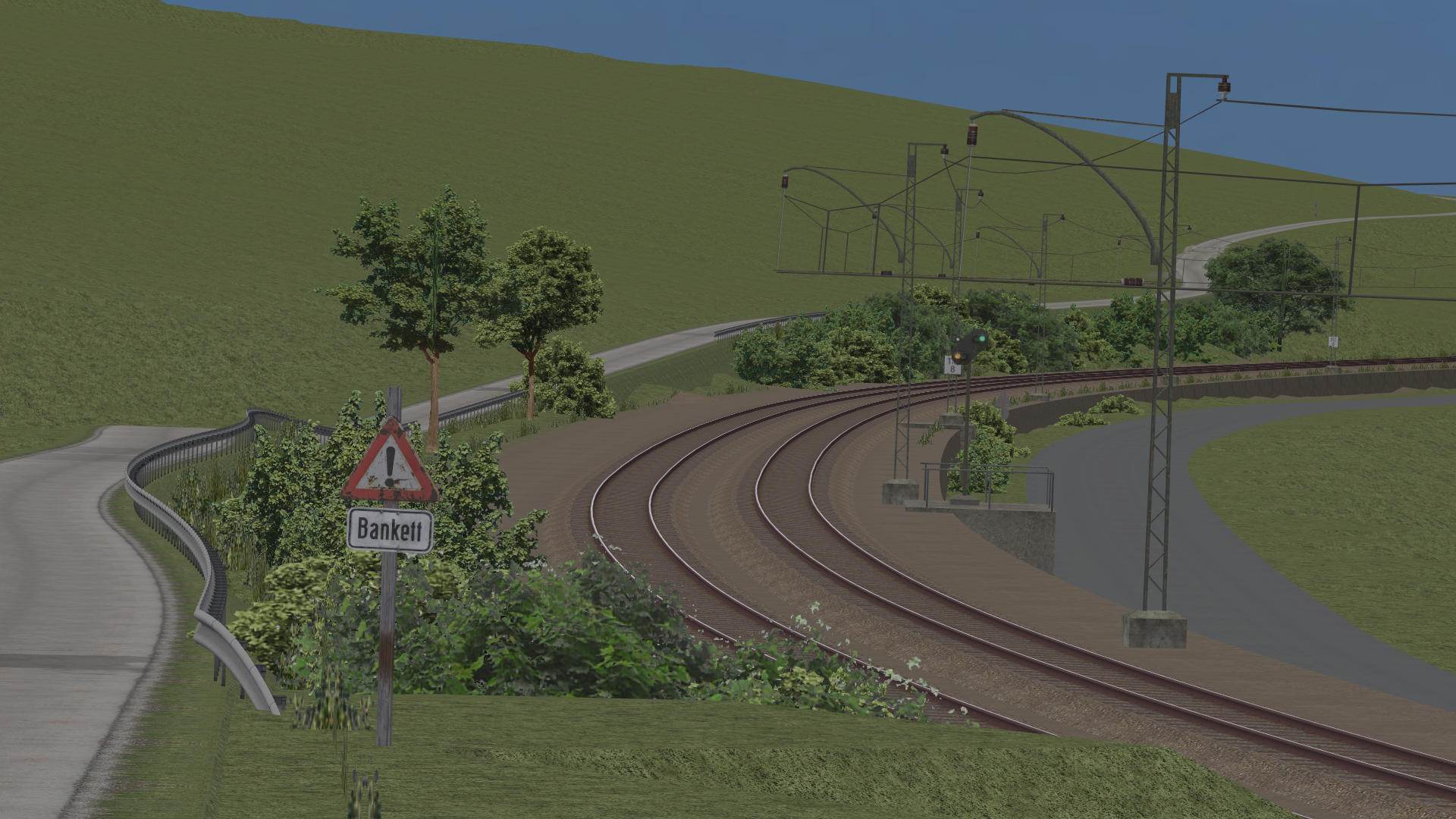 Diese Bahnstrecke ist bereits seit Jahrzehnten stillgelegt, in ihrer Trassierung aber noch perfekt nachzuvollziehen. Deshalb bot sich hier für mich ein besonderer Anreiz, dieser ehemaligen Lokalbahn nachzuspüren und ihre Gleisanlagen originalgetreu zu rekonstruieren. Einzig einige Bahnhofsanlagen im mittleren Teil der Strecke müssen noch ergänzt werden.