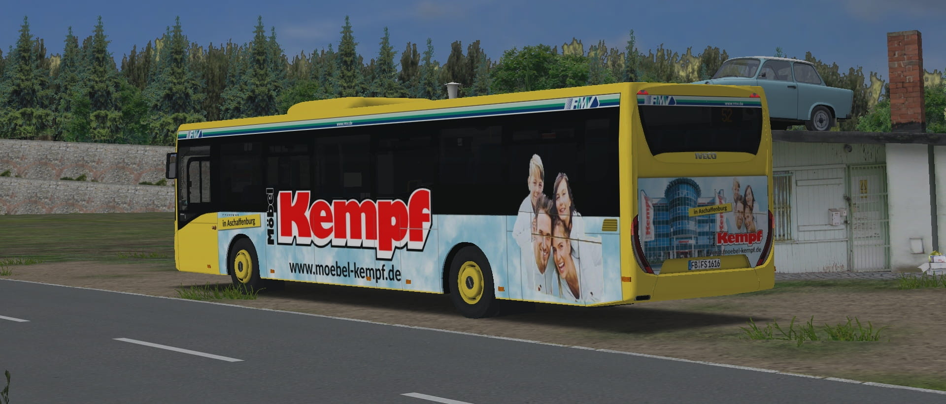 Im April 2017 erhielt der auf den Linien 51 und 52 eingesetzte Wagen 1616 eine Band- und Heckwerbung des Möbelhauses Kempf in Aschaffenburg.