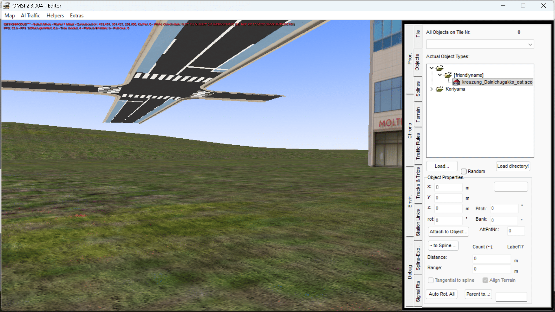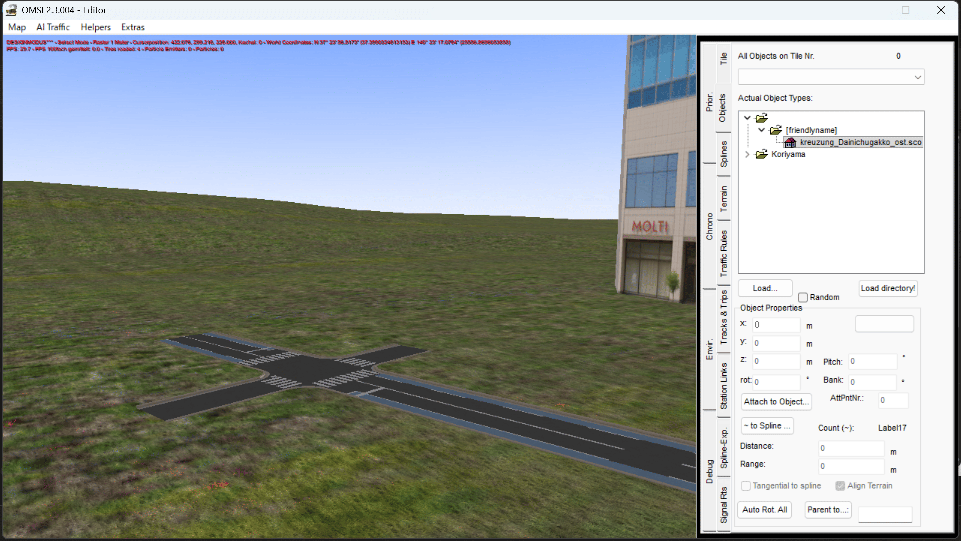 ich habe ein Kreuzungsobjekt in Blender 2.79 erstellt und über .x-Datei nach .o3d exportiert.