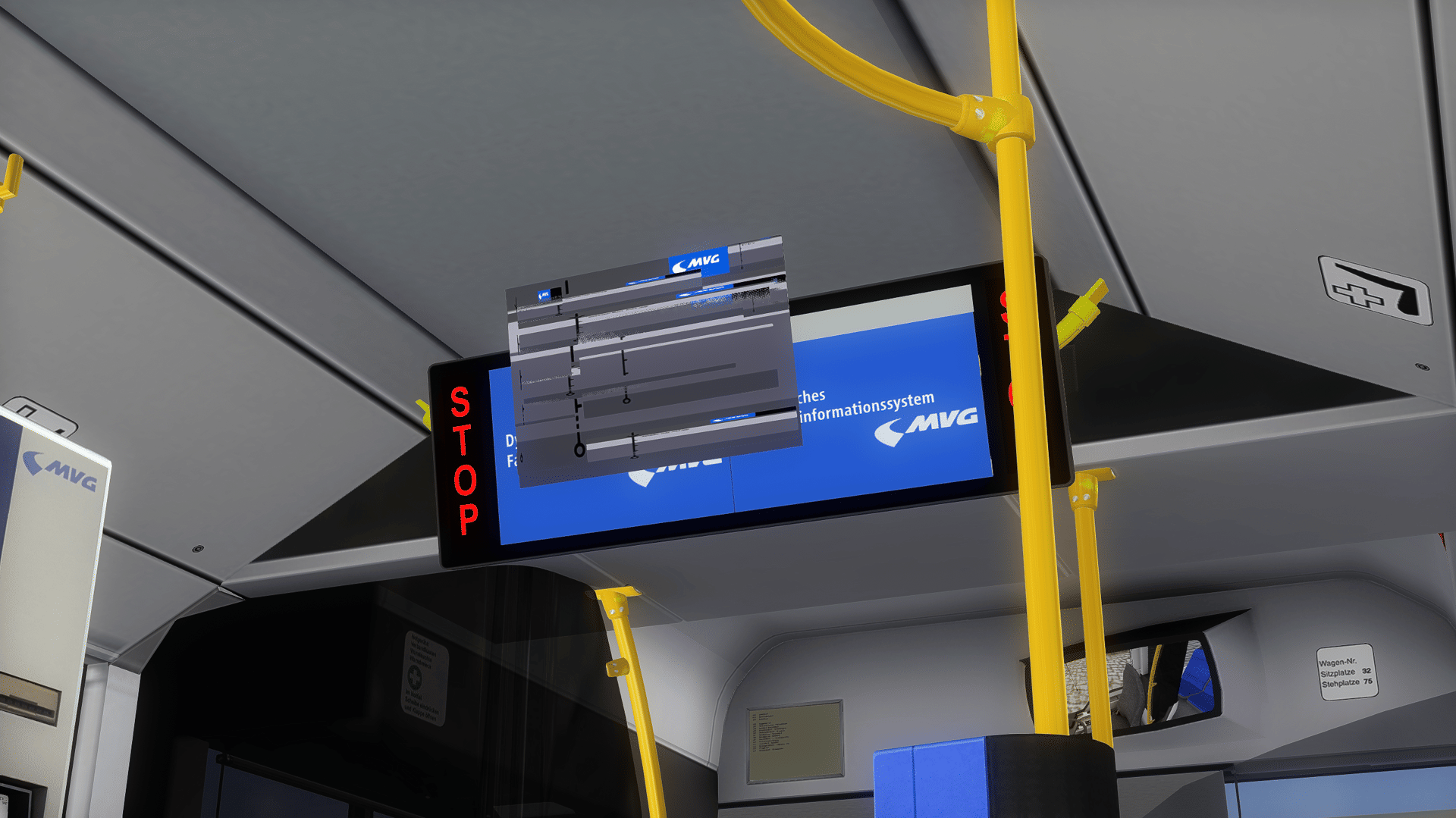 Wenn man die Haltestellenbremse einlegt hat die Münchner Innenanzeige ja auch ein anderes Bild, sprich während der Fahrt werden die nächsten Haltestellen angezeigt, und bei geöffneten Türen nur die aktuelle.