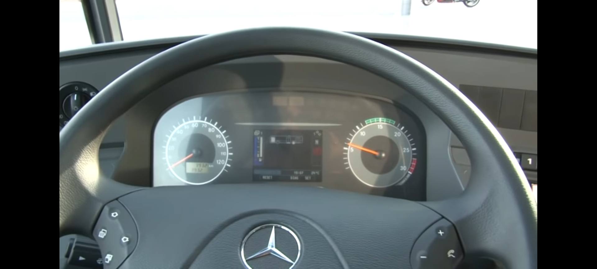 Der Drehzahlmesser zeigt eindeutig, dass hier der OM906 verbaut ist. Beim 457er kommt nämlich der Drehzahlmesser der nur bis 2500 geht (roter Bereich ab 2000) zum Einsatz. Also auch etwas anders als beim Euro6er mit OM470.