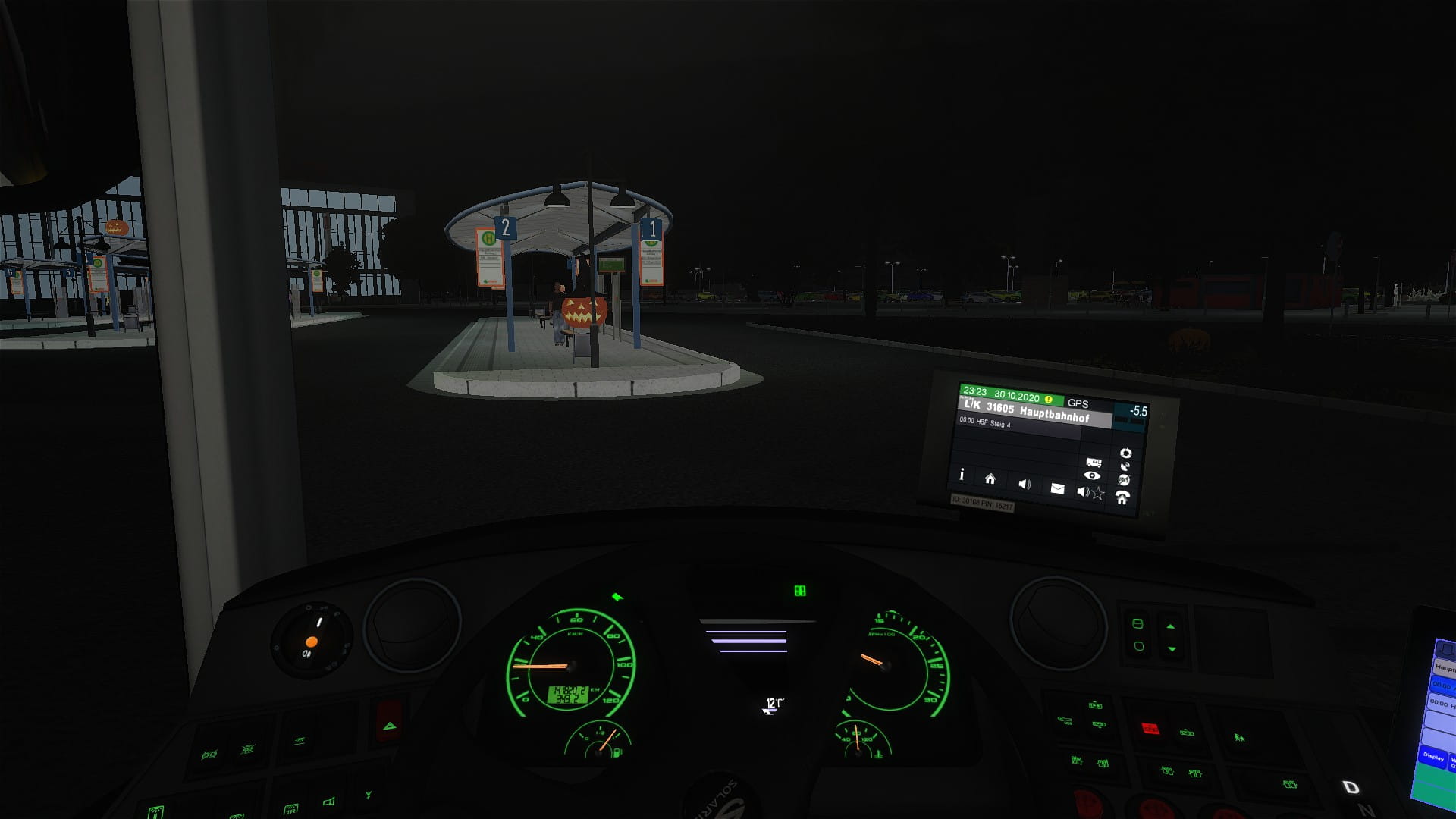 Die paar Kürbisse, Hexenverbrennung, Skelette und Gespenstische Musik war nichts in vergleich zur schlechten Fahrphysik des Solaris und die "Gespenstische" Nachladeruckler, hüpfende Bus und Fahrplanzeiten wo trotz normaler Fahrweise den Hauptbahnhof auf dem Rückweg mit +5 erreicht.