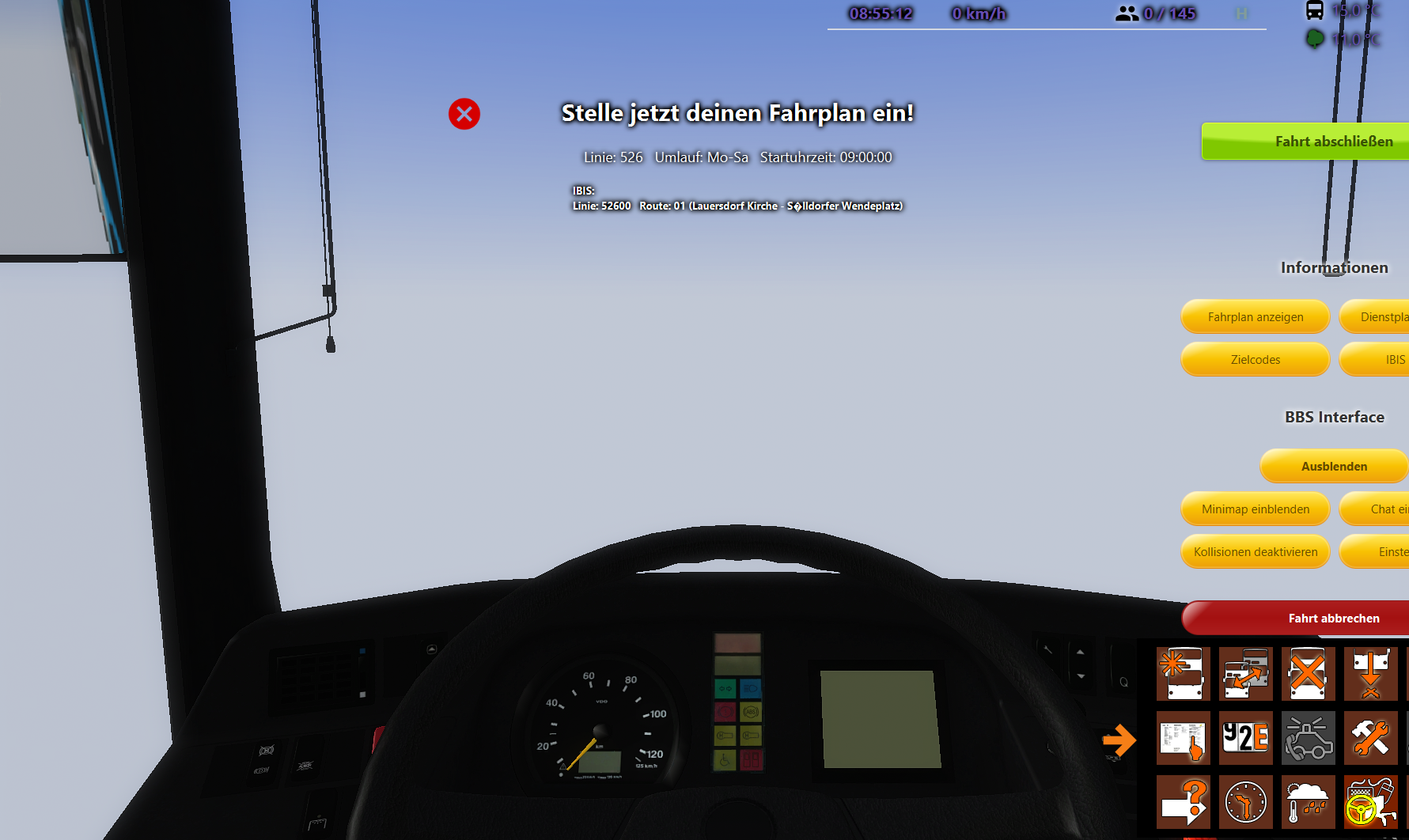 Ich starte die Karte Immer Ohne Busse. Fehler kommen als Bilder.