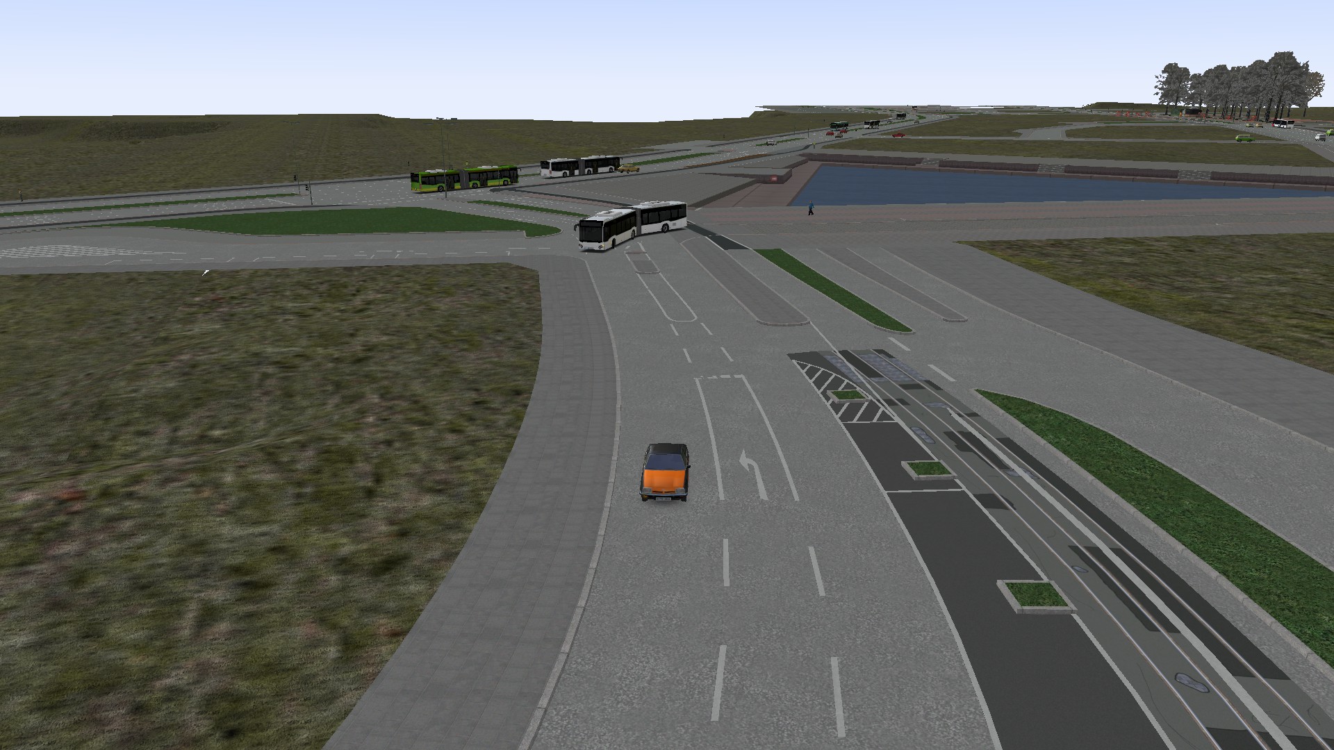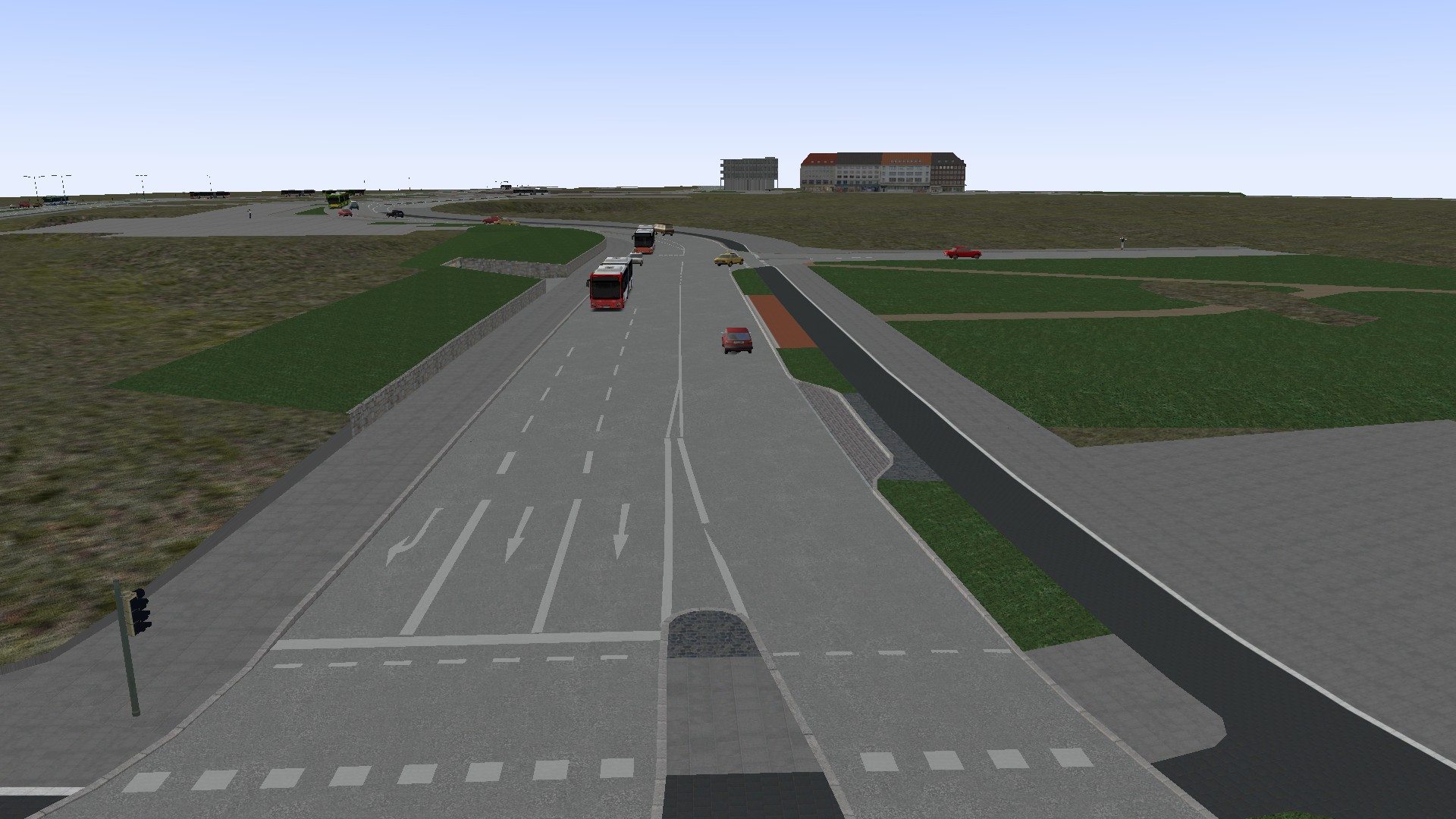 Fehlt nur noch die Markierungen an der Kreuzung und die Richtungspfeile, dann wäre die Kreuzung fertig abgesehen vom Ki-Verkehr