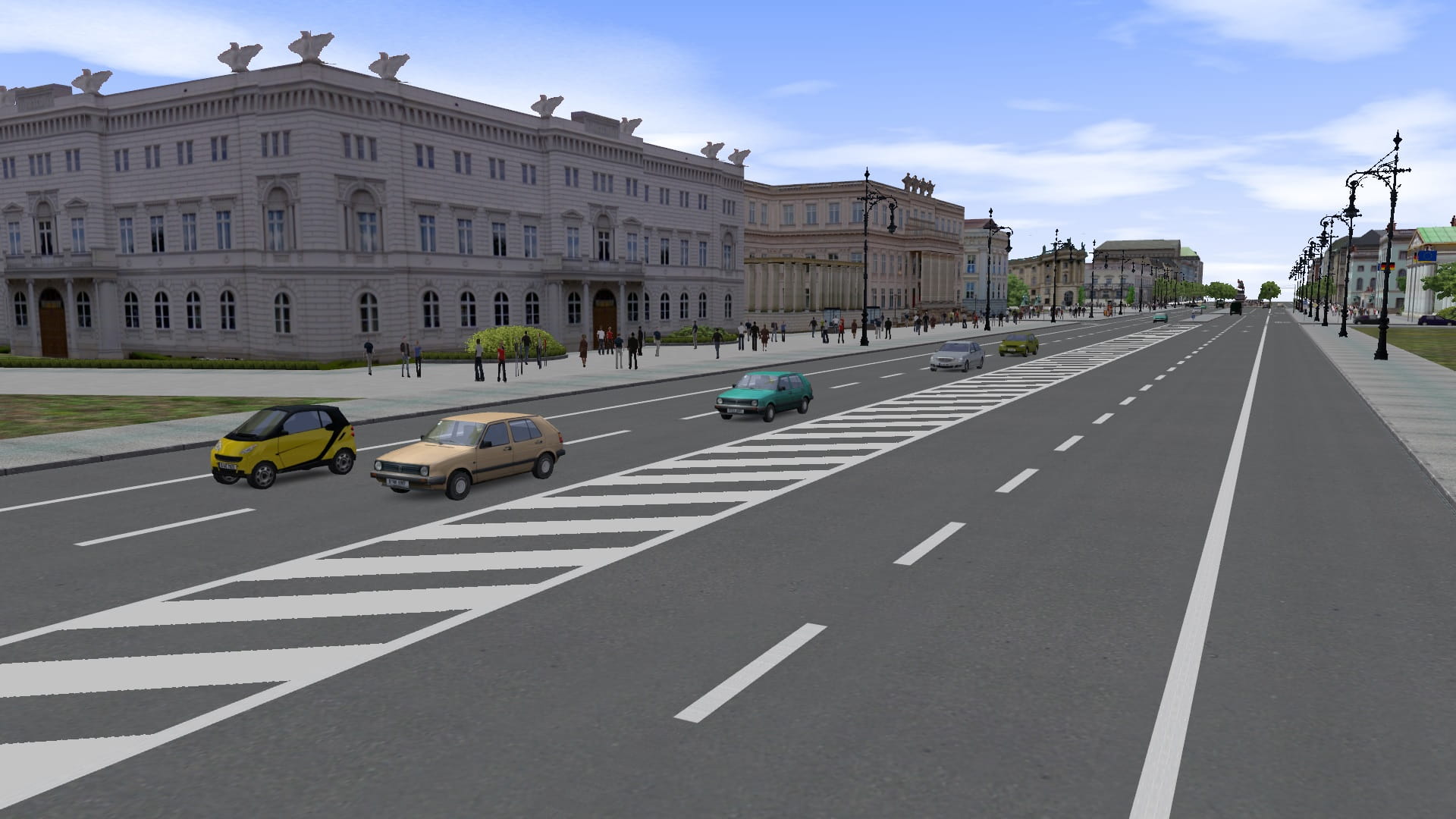Bis zum fertigen nächsten Update wird wohl noch einige Zeit vergehen. Nicht zuletzt deshalb, weil Texturfotos von den großen Hochhäusern nicht einfach anzufertigen sind und die Geschäfte meistens durch Autos und Passanten verdeckt sind. Da muss man ordentlich schneiden und tricksen bis die fertige Textur brauchbar ist.