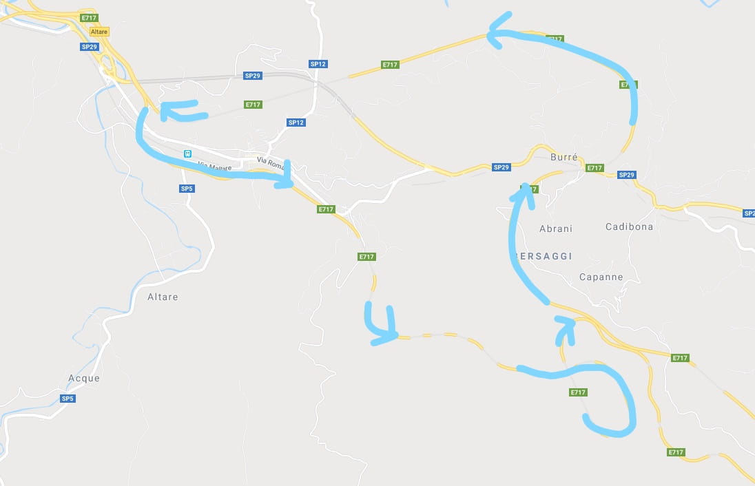 (Hier verläuft die E717 in Pfeilrichtung)