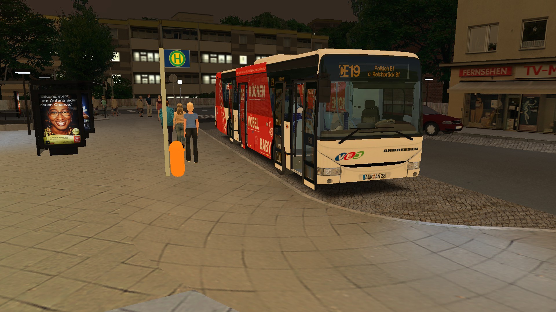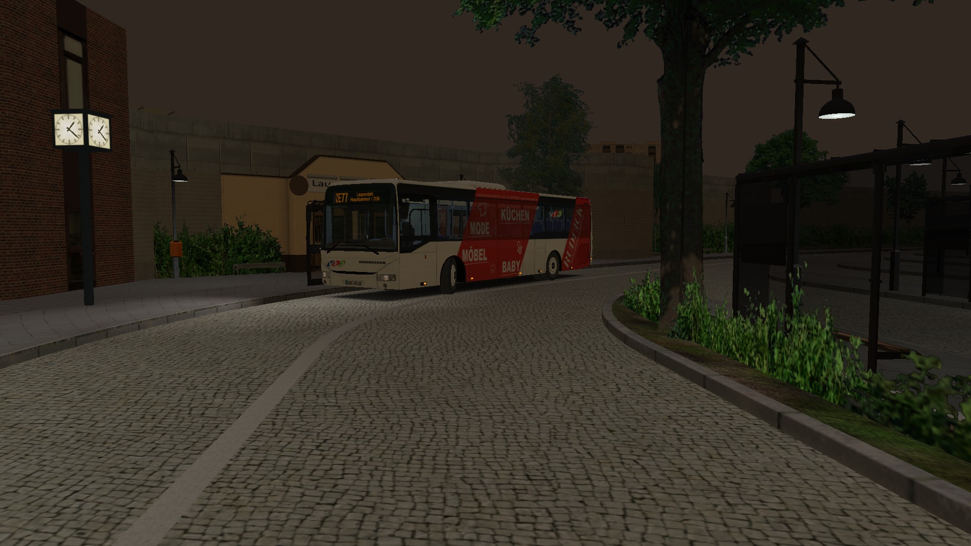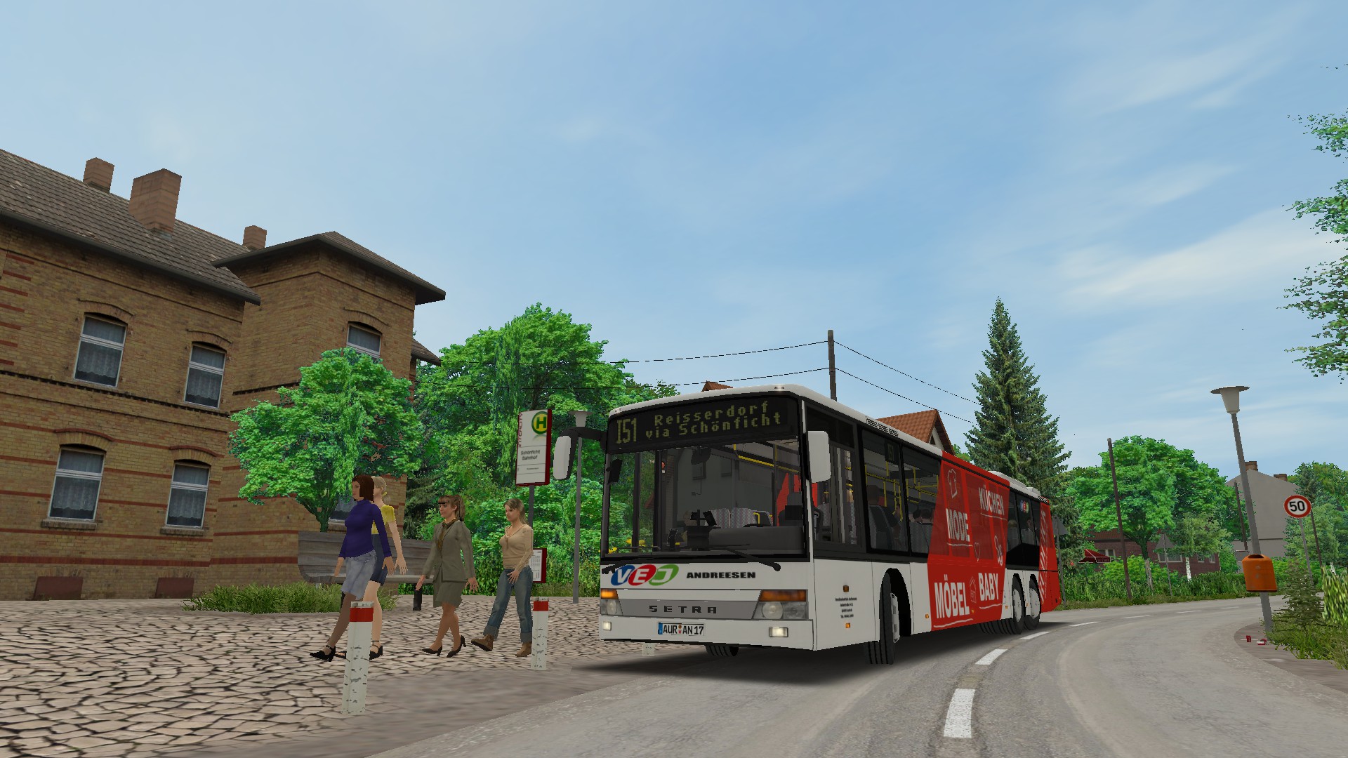 So sieht es dann zu Schulzeiten um kurz nach 13 Uhr am ZOB in Lichtentanne aus. Ein schönes Bild - wie ich finde! Diese Himmelstextur können wir übrigens beim Add-on mitliefern, denn den habe ich auf euren Wunsch hin extra aus eigenen Bildaufnahmen zusammengeschnipselt.
